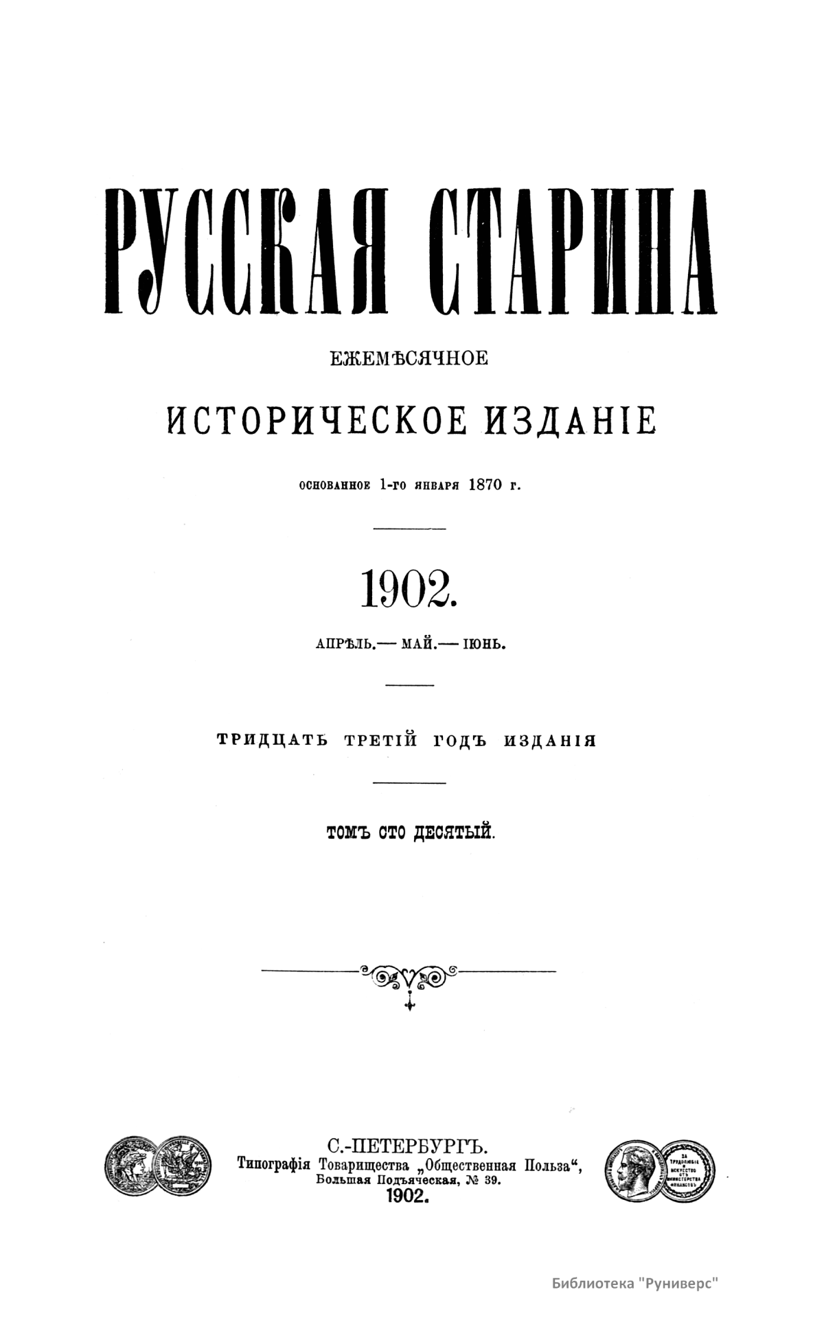 Русская старина. Томъ CX. 1902. Выпуски 4-6