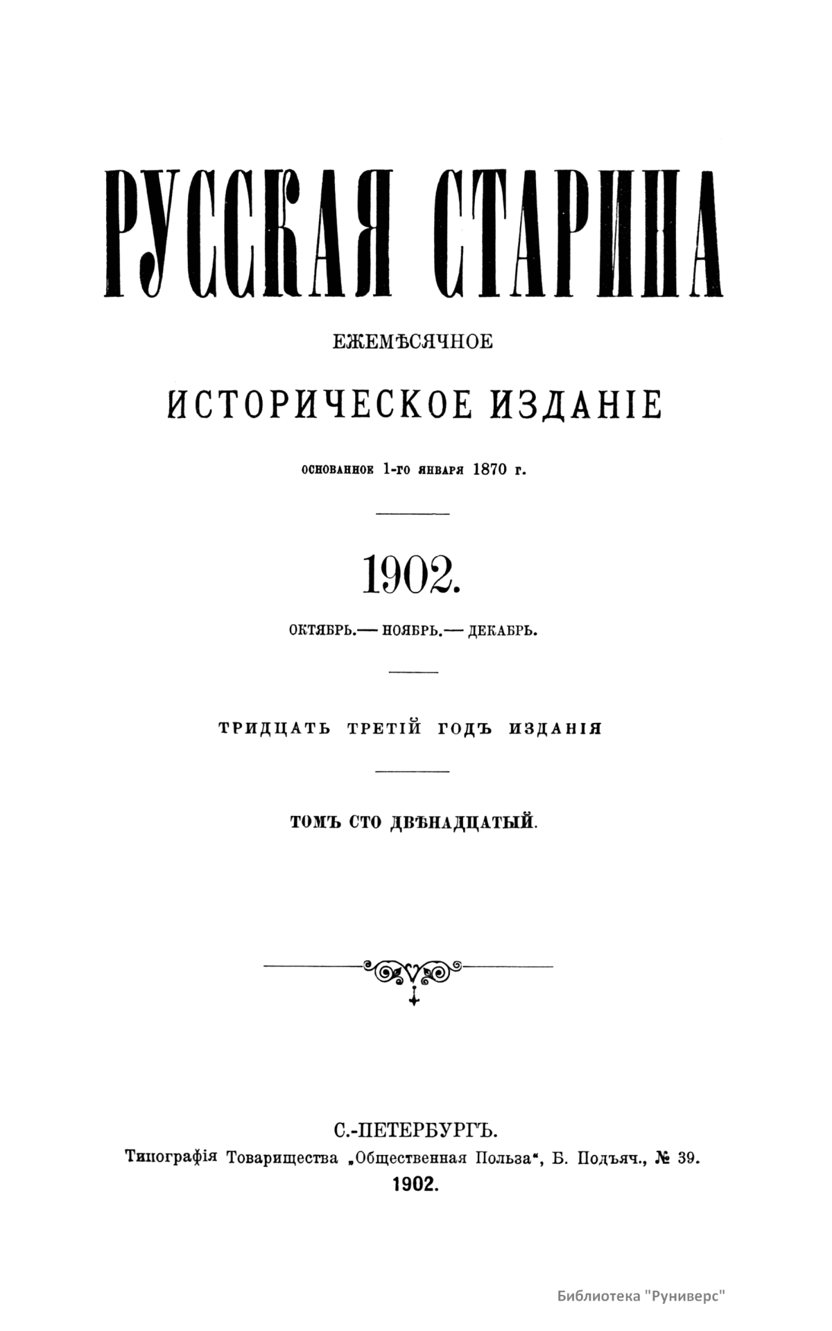 Русская старина. Томъ CXII. 1902. Выпуски 10-12