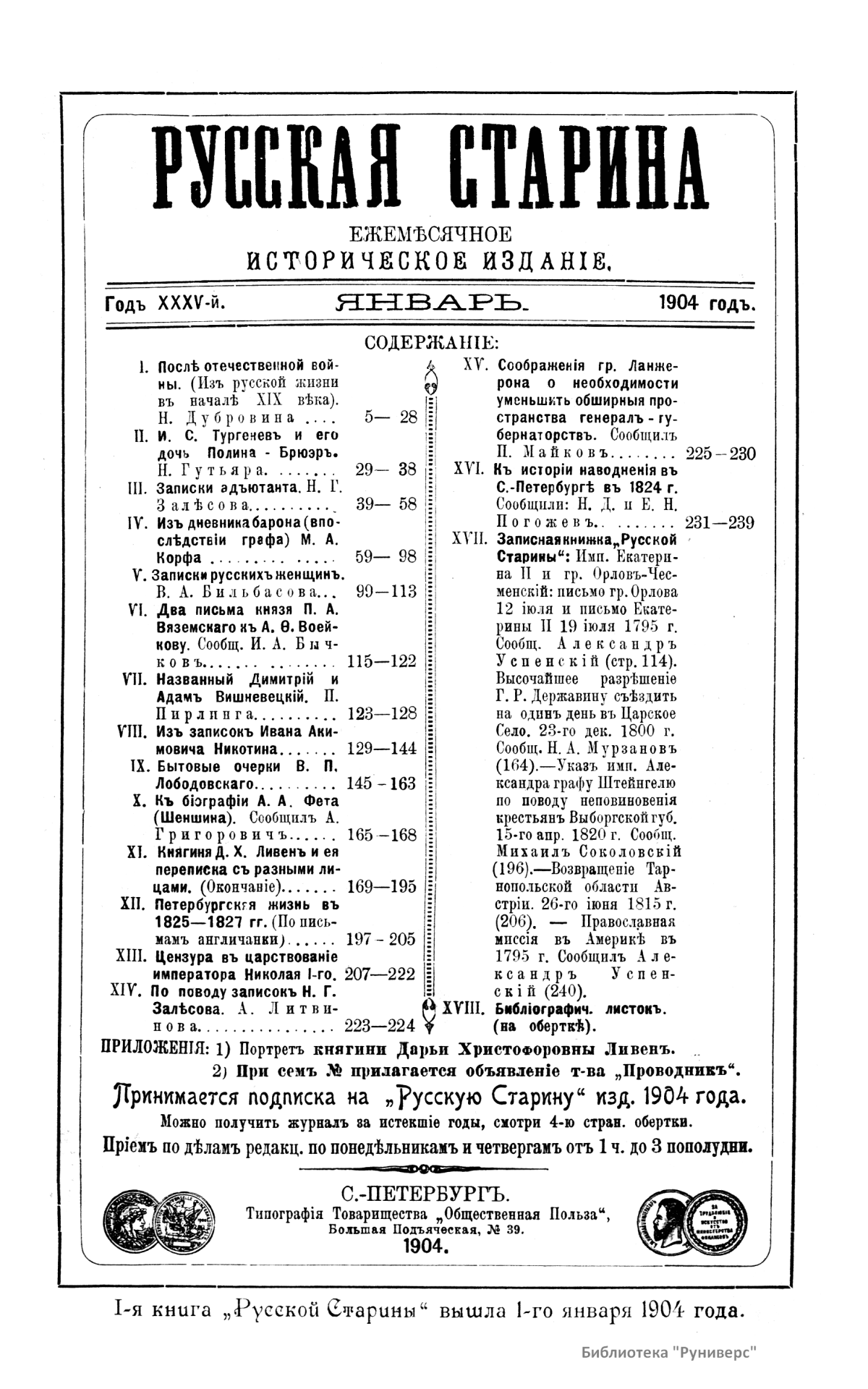 Русская старина. Томъ CXVII. 1904. Выпуски 1-3