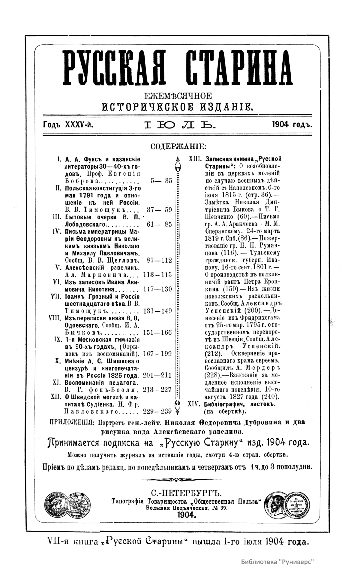 Русская старина. Томъ CXIX. 1904. Выпуски 7-9