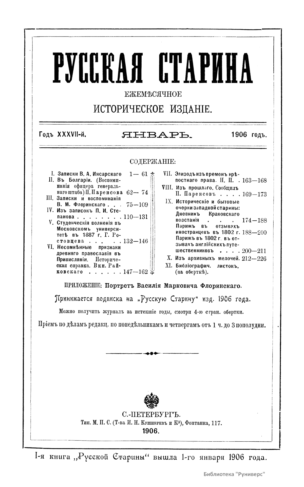 Русская старина. Томъ CXXV. 1906. Выпуски 1-3