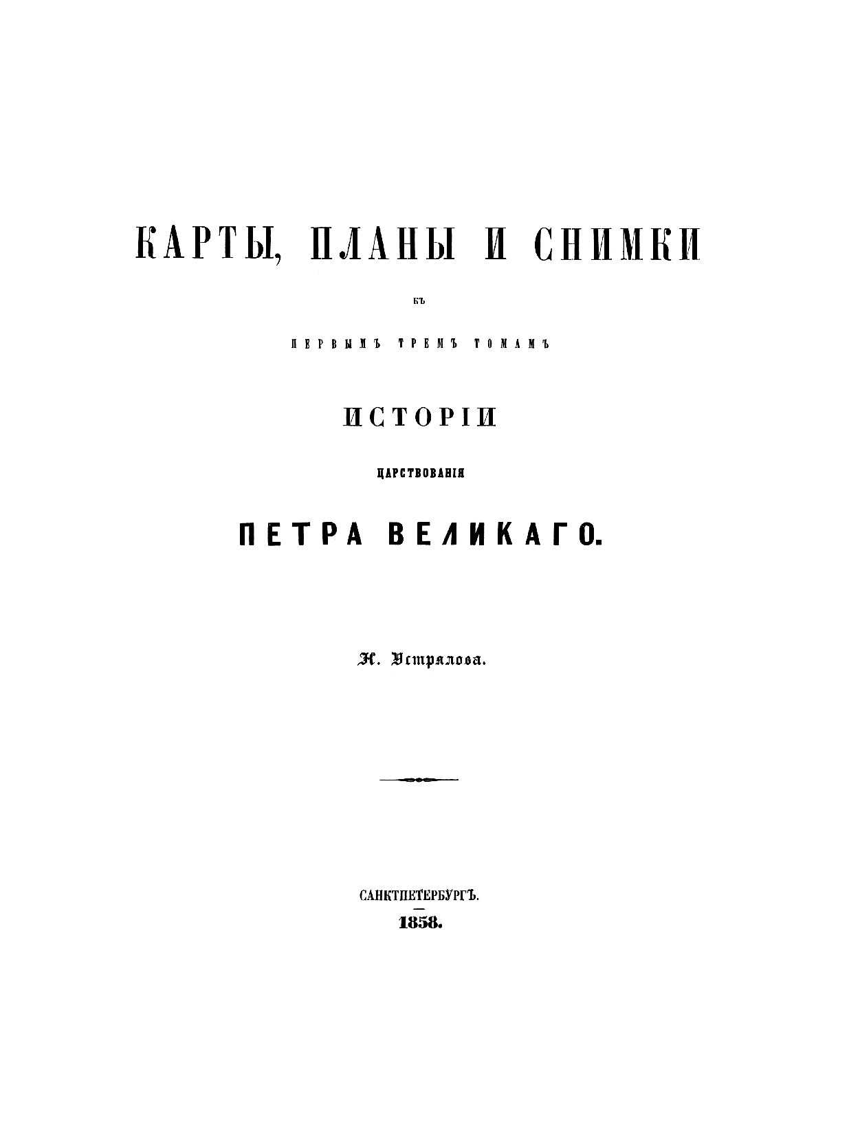 Карты, планы и снимки къ первымъ тремъ томамъ исторiи царствованiя Петра Великаго