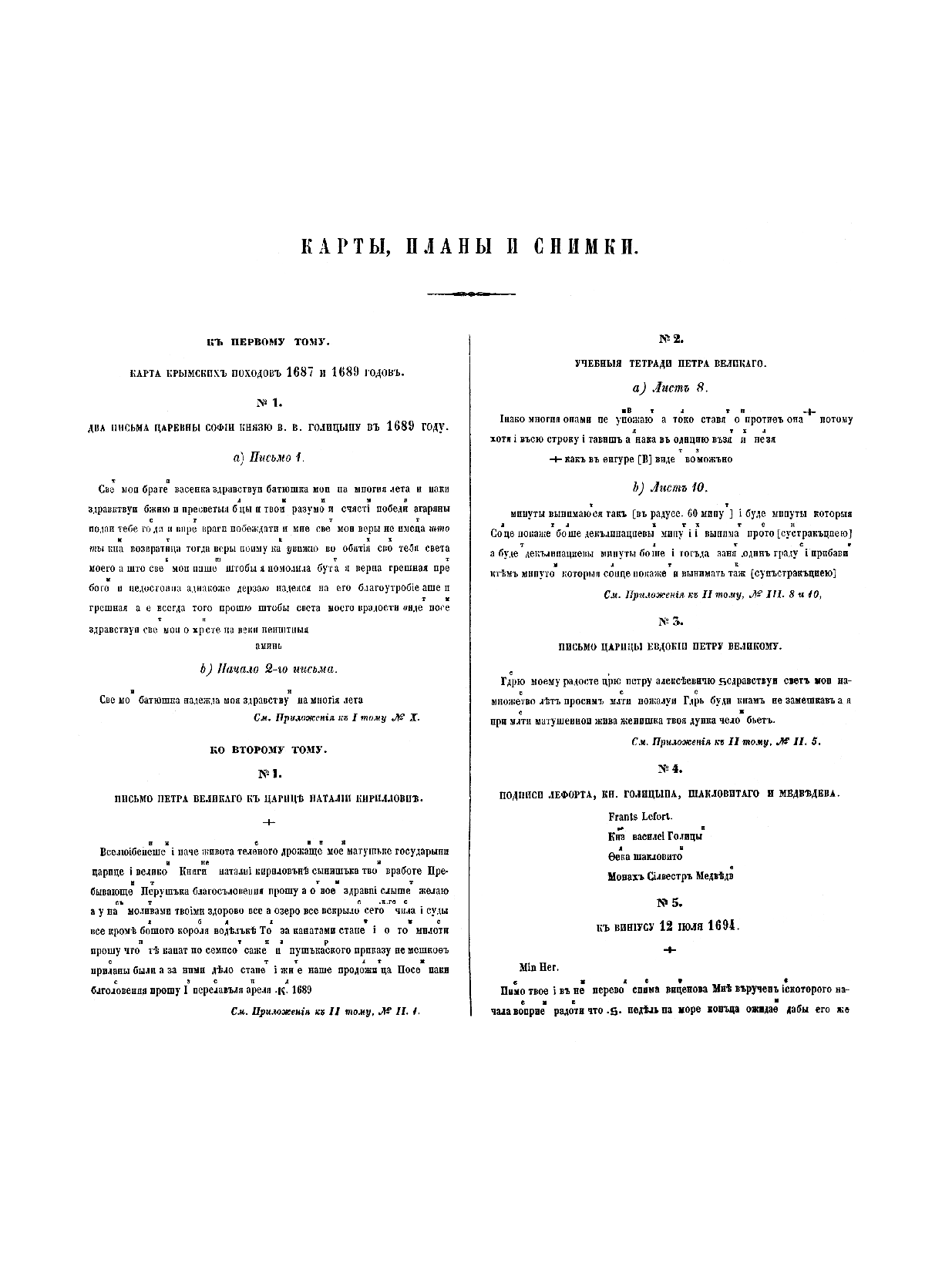 Карты, планы и снимки к первым трем томам истории царствования Петра Великого