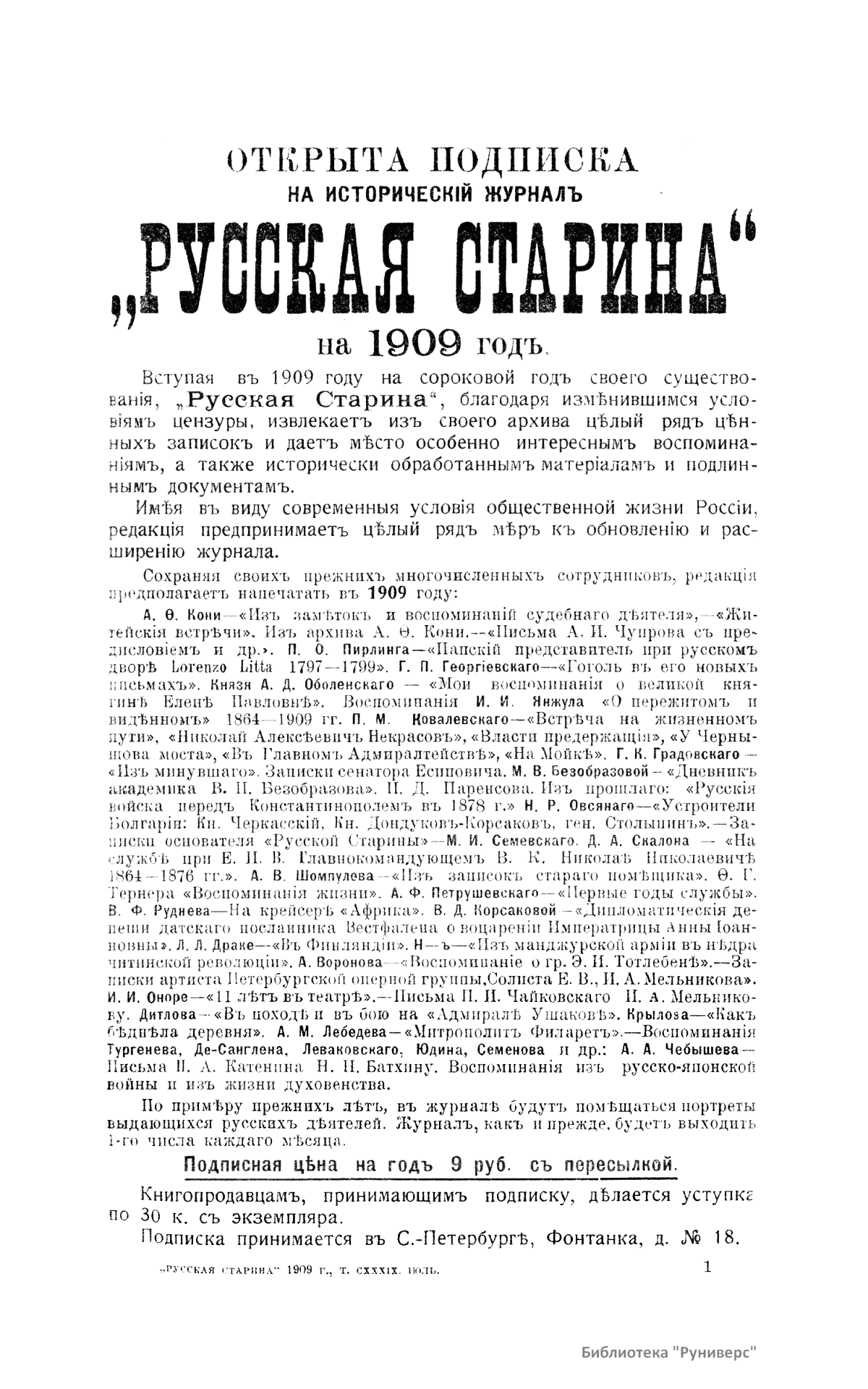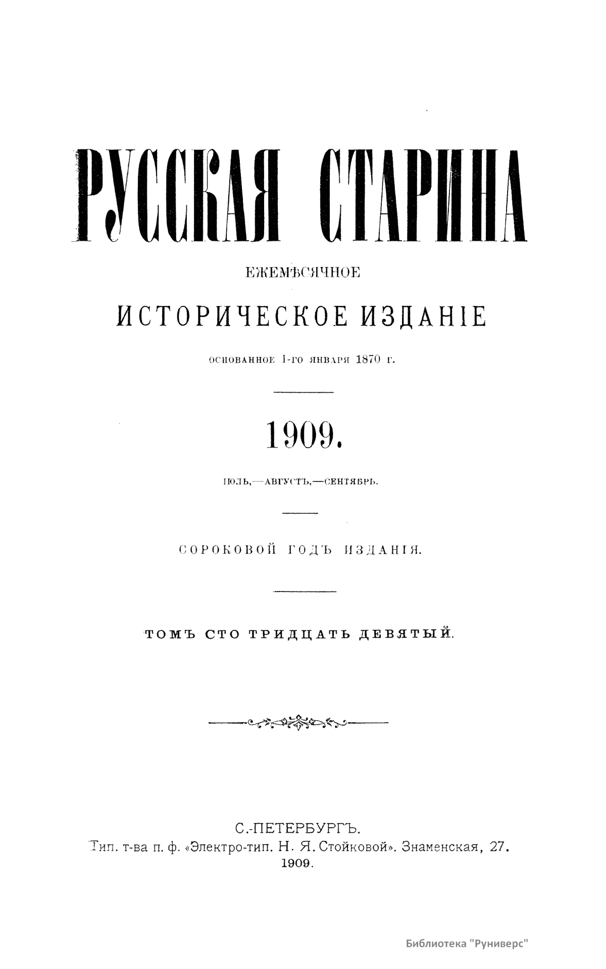 Русская старина. Том CXXXIX. 1909. Выпуски 7-9