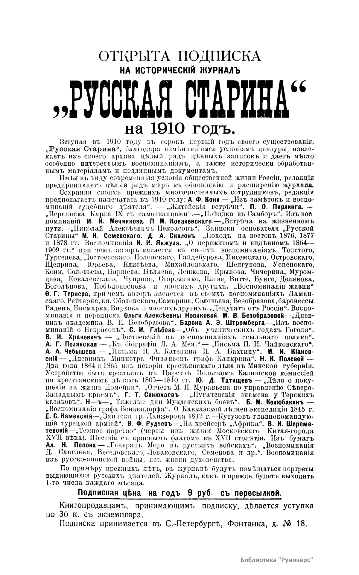 Русская старина. Томъ CXL. 1909. Выпуски 10-12