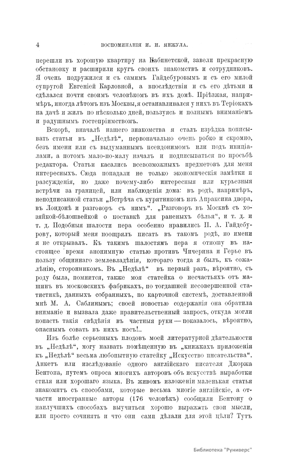 Крупным вкладом в журнал явились записки и дневник А. В. Никитенко (1888-1892), а также записки Н. И. Пирогова (1884-1885, 1887).