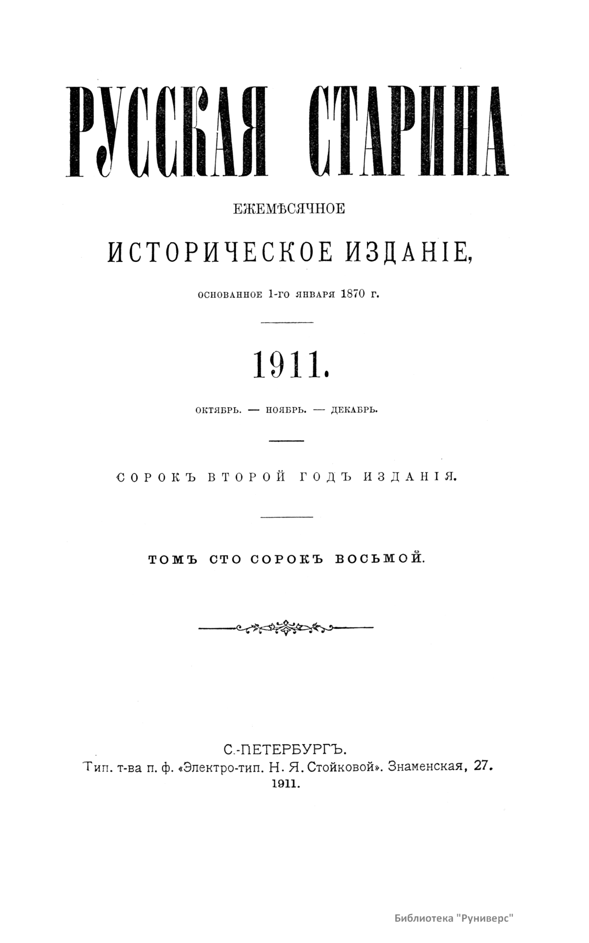 Русская старина. Томъ CXLVIII. 1911. Выпуски 10-12