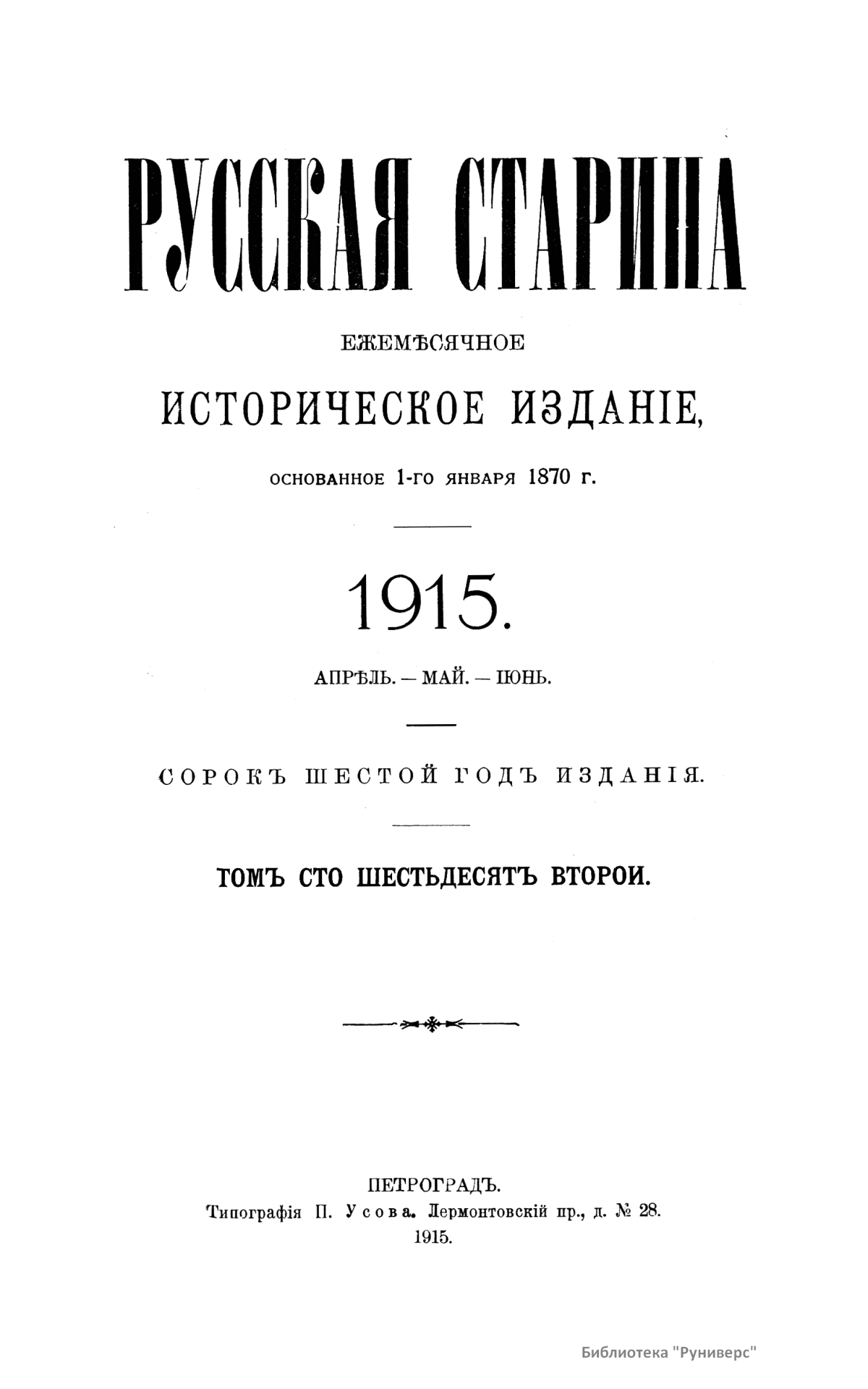 Русская старина. Томъ CLXII. 1915. Выпуски 4-6