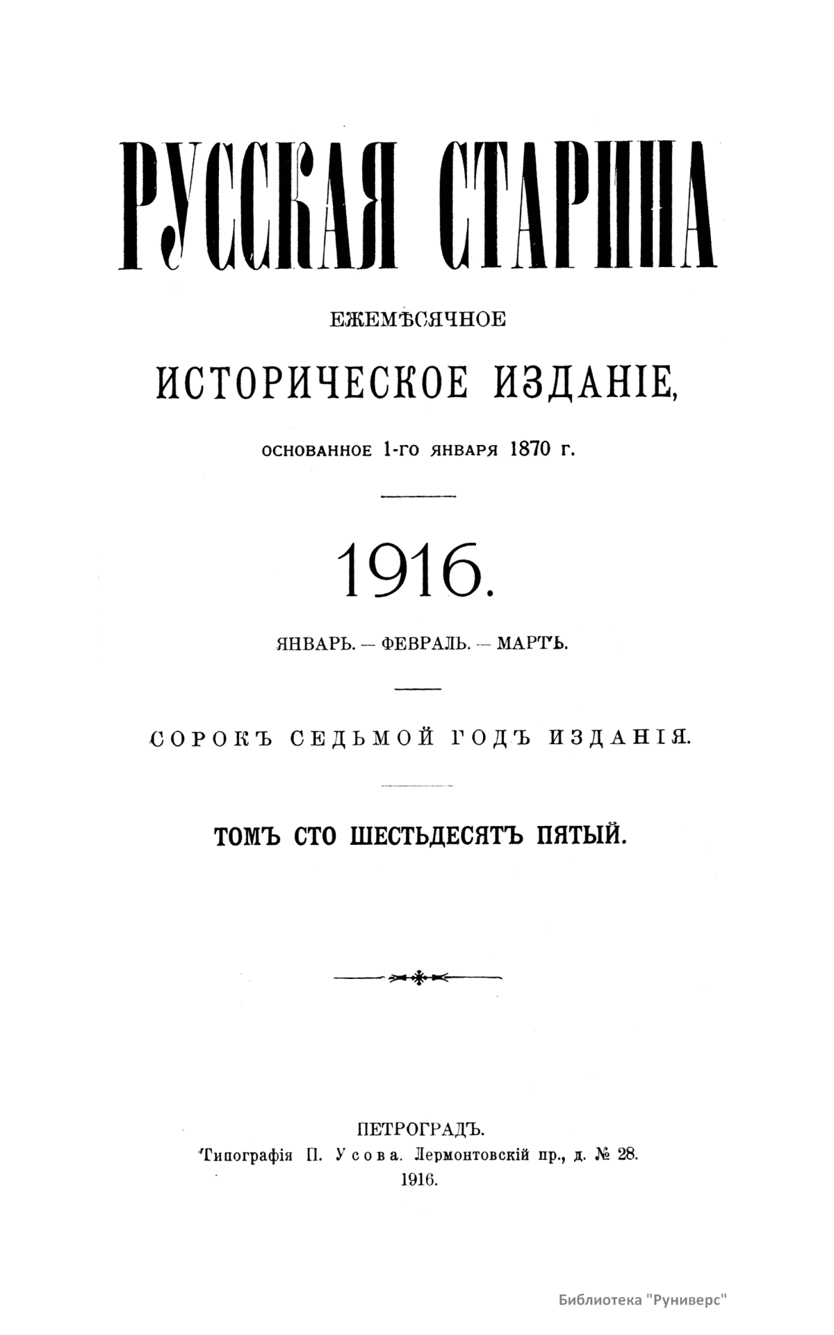 Русская старина. Томъ CLXV. 1916. Выпуски 1-3