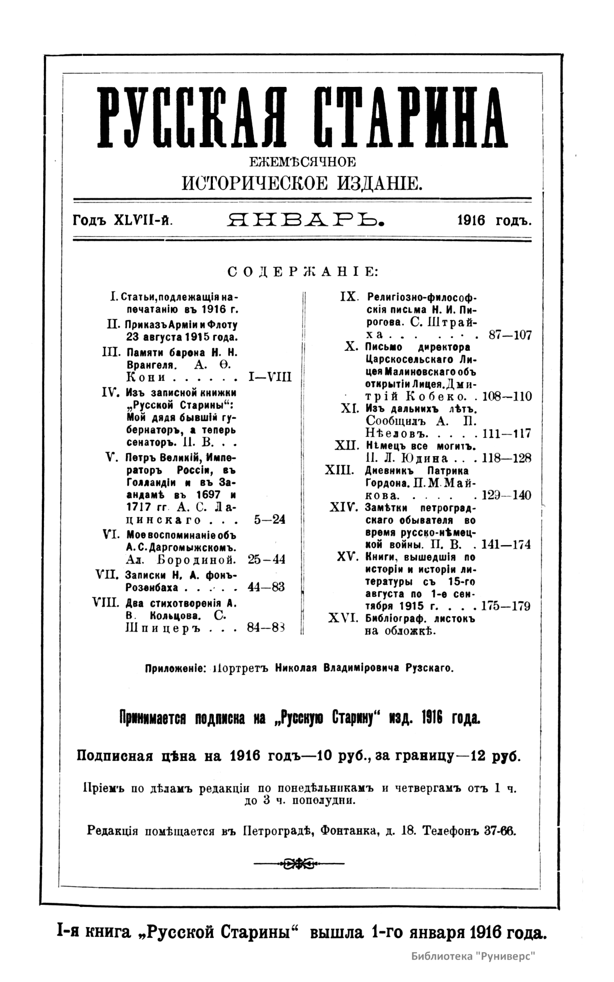 Русская старина. Том CLXV. 1916. Выпуски 1-3