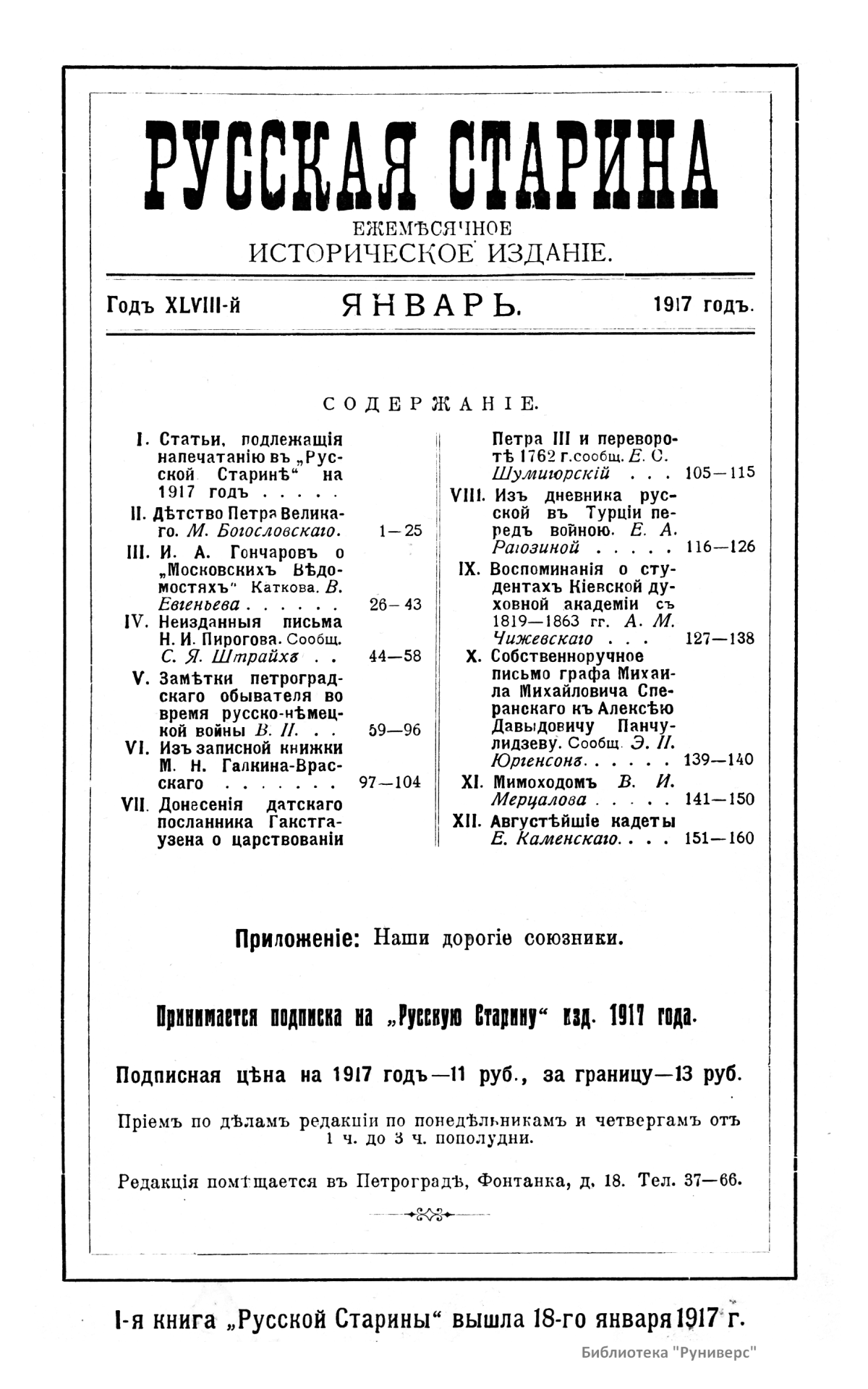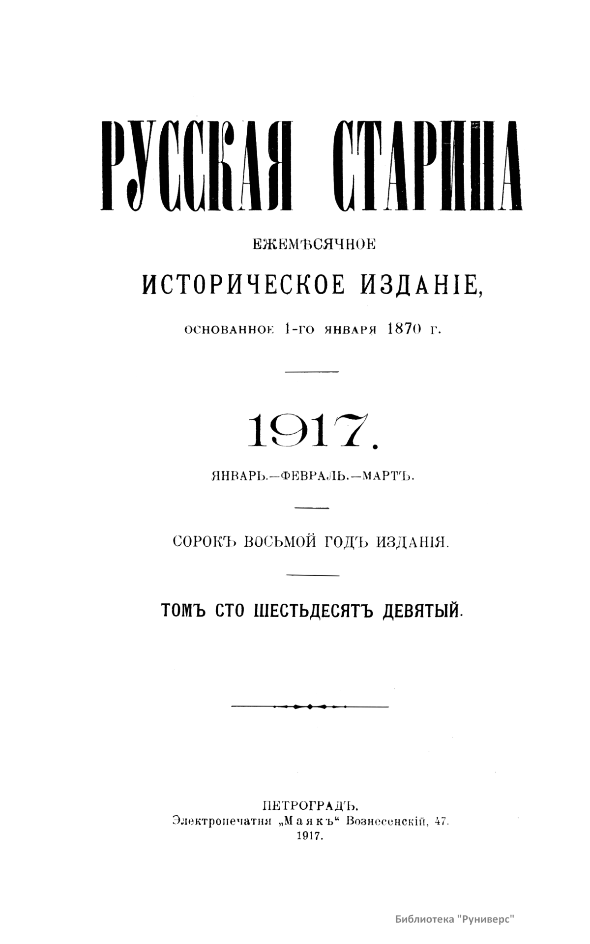Русская старина. Томъ CLXIX. 1917. Выпуски 1-3