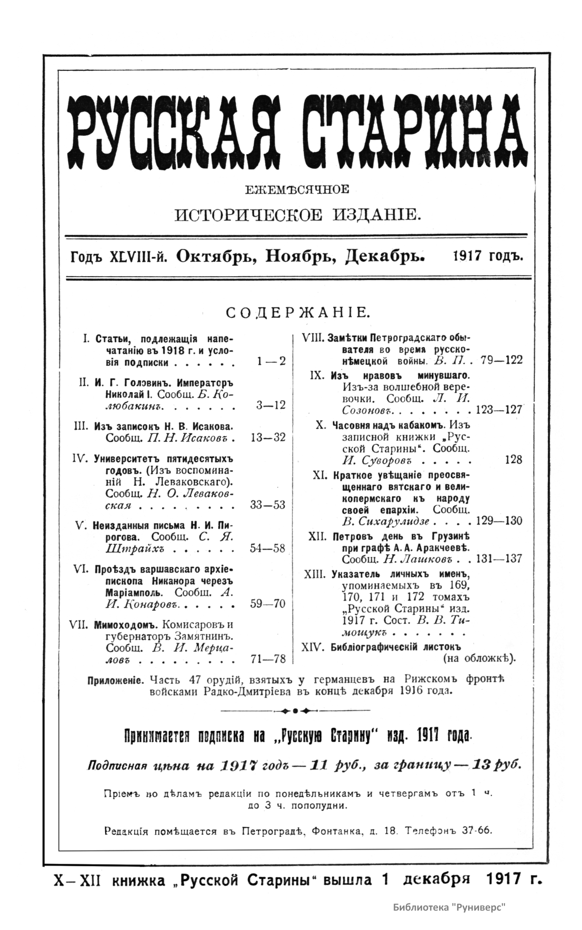 Русская старина. Томъ CLXXII. 1917. Выпуски 9-12