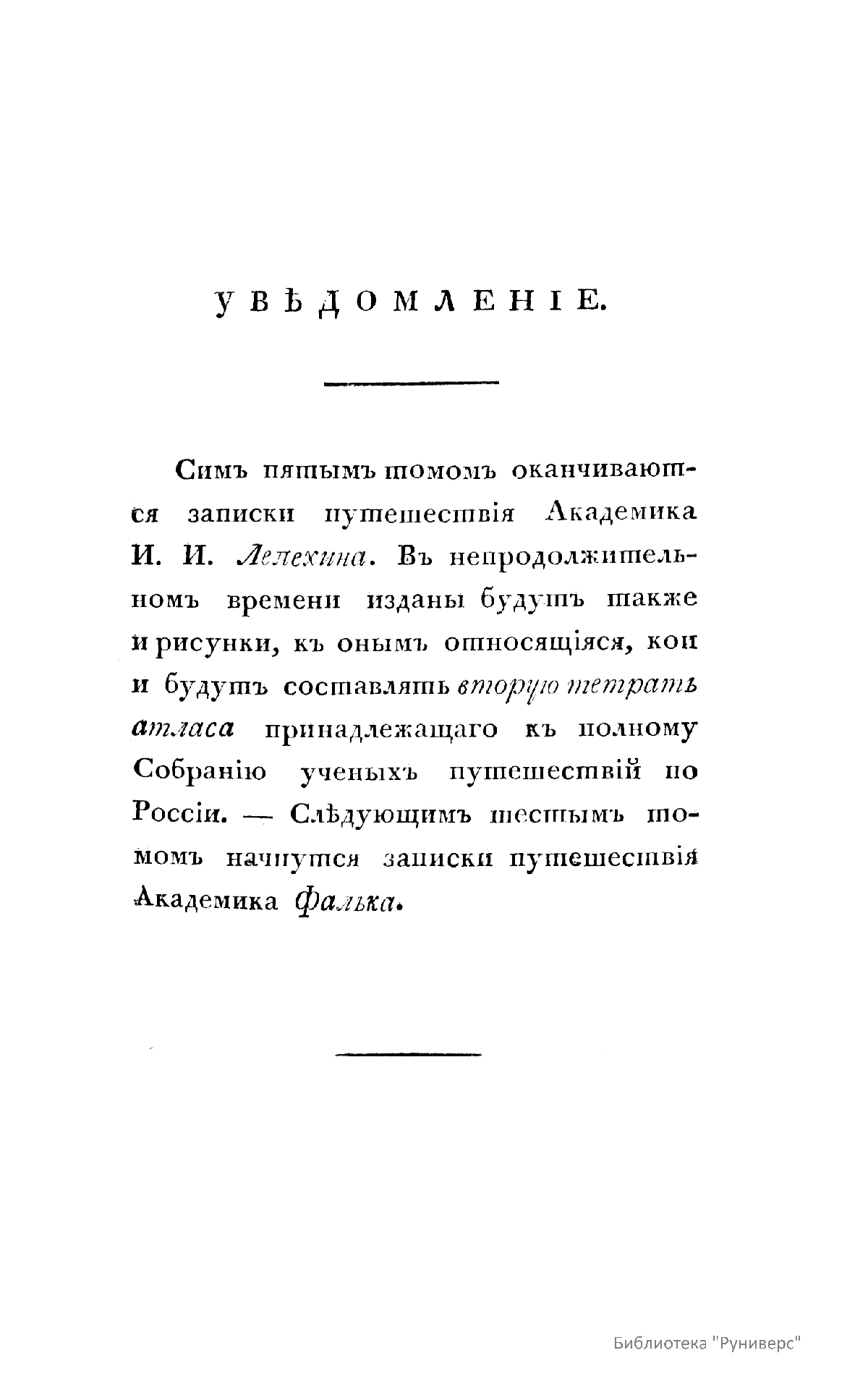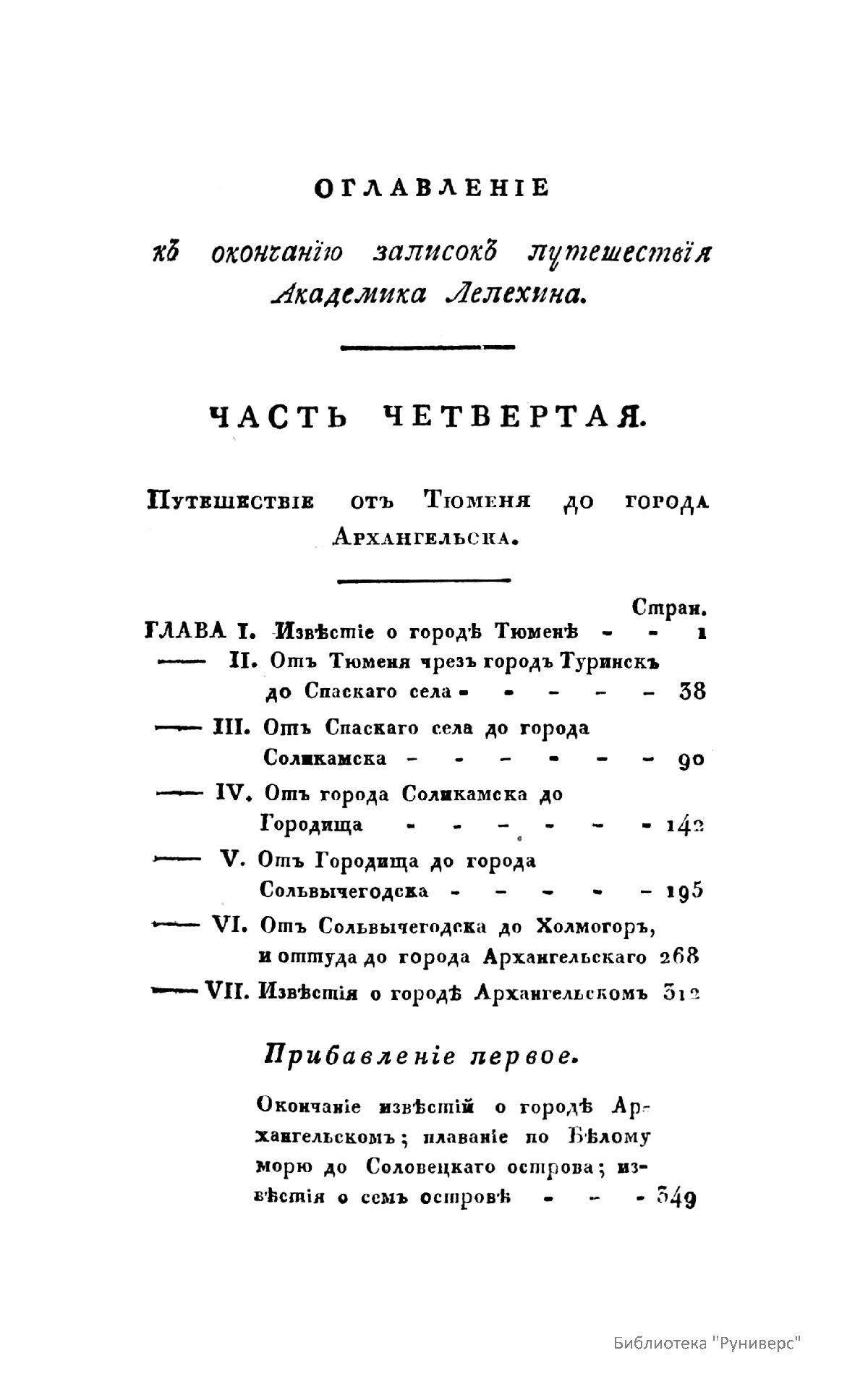 Полное собрание ученых путешествий по России, издаваемое Императорскою Академией Наук, по предложению ее президента. Том пятый. Продолжение Записок Путешествия Академика Лепехина