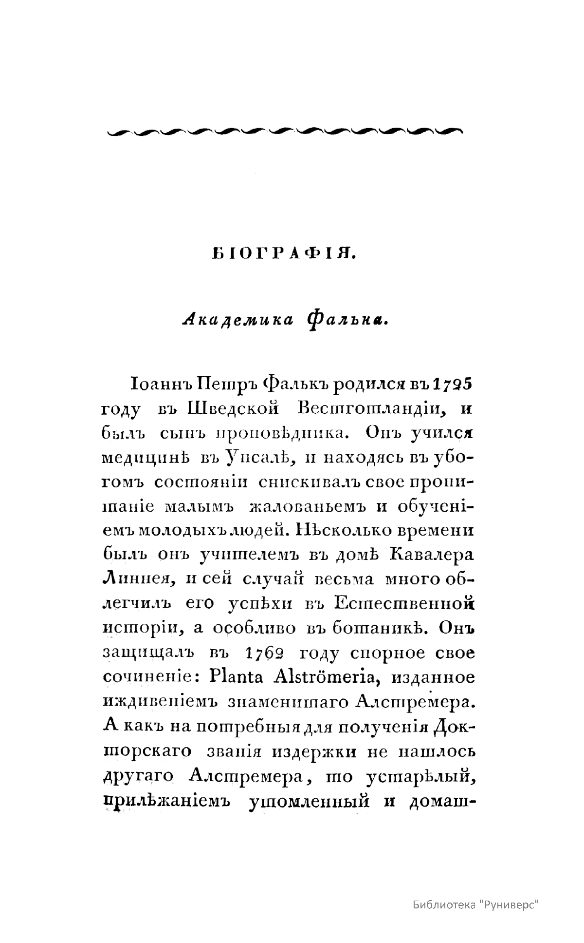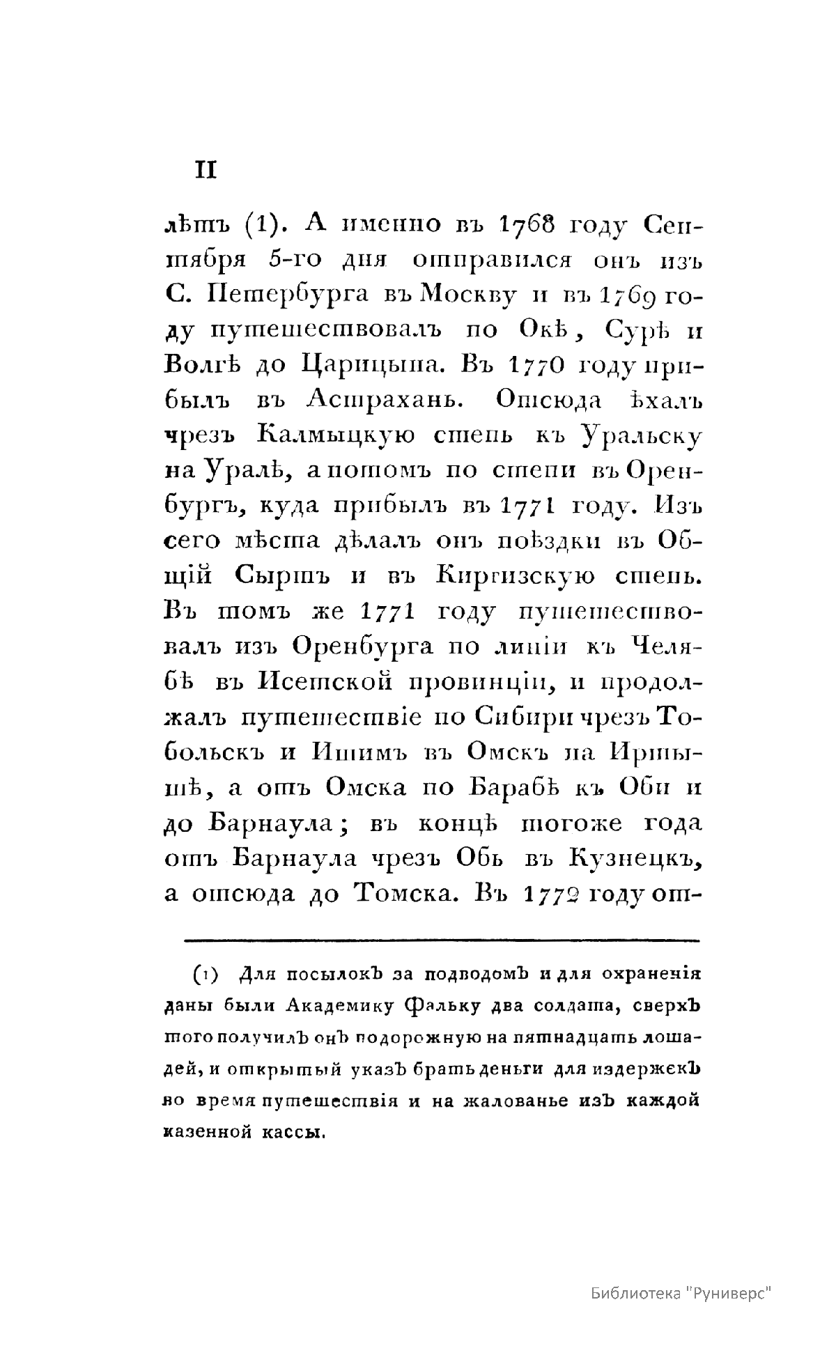 «Полное собрание ученых путешествий по России» вышло в свет по инициативе президента Санкт-Петербургской академии наук С. С. Уварова с целью обобщения и распространения основных сведений о России, полученных в результате экспедиций Академии наук, предпринятых в разные годы. В сочинение вошли следующие исследования: «Описание земли Камчатки» Степана Петровича Крашенинникова, ботаника и этнографа, участника Второй Камчатской экспедиции; «Записки путешествия академика Лепехина» (Иван Иванович Лепехин, естествоиспытатель и лексикограф, принимал участие во многих научных экспедициях по Уралу, Поволжью, Западной Сибири и Русскому Северу); «Записки путешествия академика Фалька» (Иоганн Петер Фальк, врач и естествоиспытатель, был начальником Оренбургской экспедиции, охватившей Сибирь и Алтай). Каждое исследование предваряет биография автора.