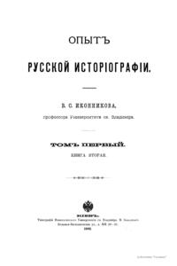 Иконников Владимир Степанович (1841–1923) — историк, академик Петербургской академии наук (1914). Самый капитальный труд В. С. Иконникова — его широко задуманный «Опыт русской историографии» — библиографическое пособие, целая энциклопедия историковедения и библиографии русской истории. Настоящее издание содержит фактический материал по истории летописания.