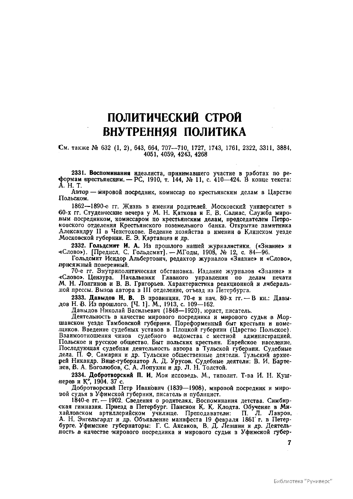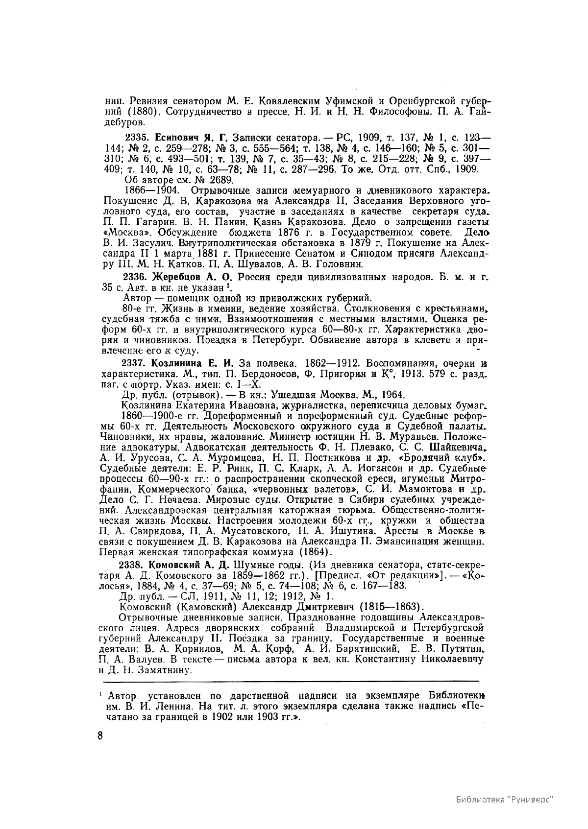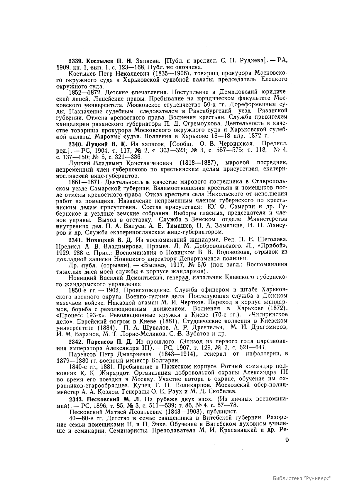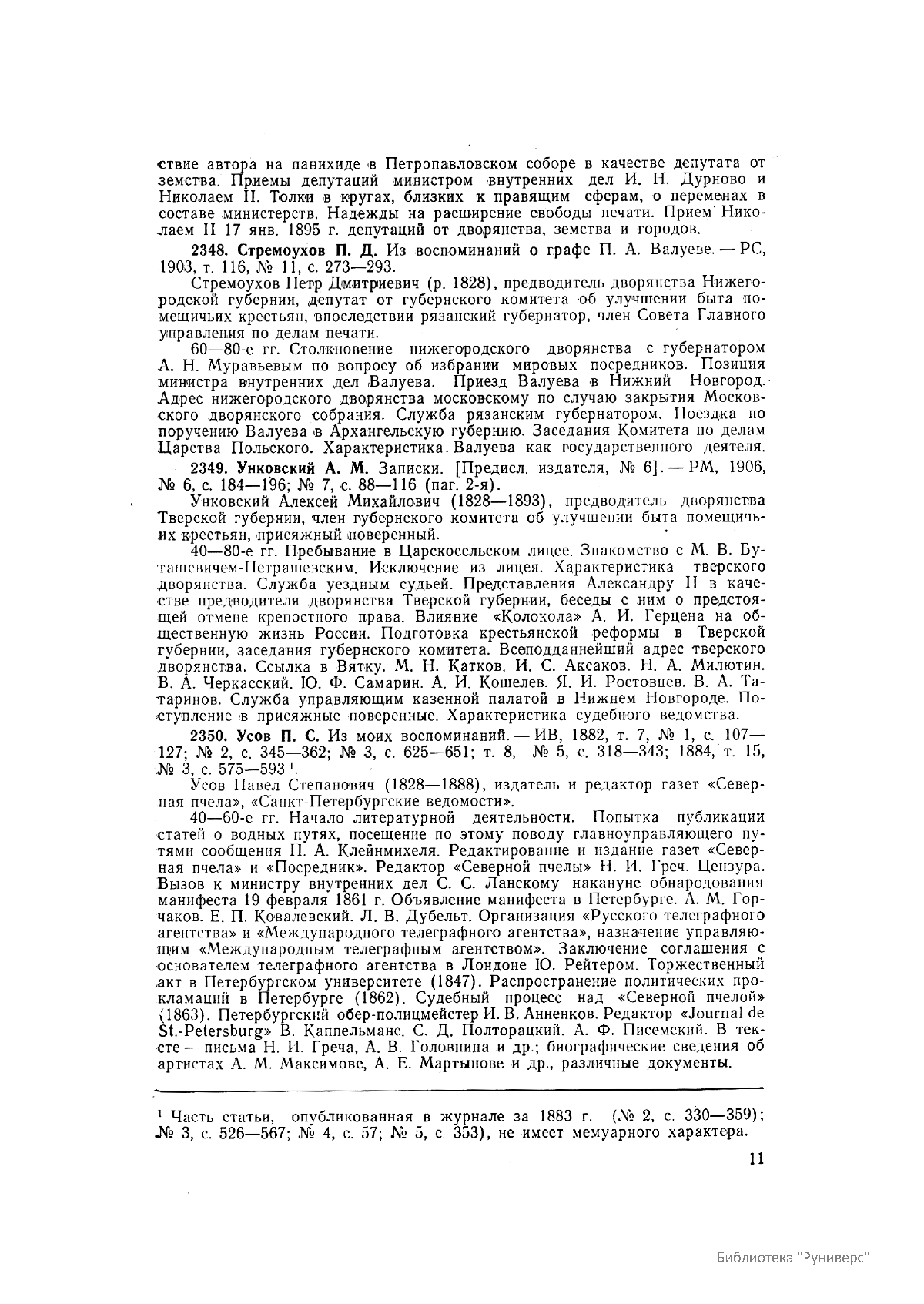 Многотомное издание этого уникального библиографического исследования, ставшего итогом многолетней работы большого коллектива ведущих отечественных источниковедов и библиографов главных библиотек нашей страны, представляет собой крупнейшее собрание аннотированной мемуарной литературы по истории России. Ведущую роль в создании этого фундаментального издания сыграл крупный отечественный ученый-историк П.А. Зайончковский, под редакцией и неусыпным контролем которого разрабатывался и выходил представленный многотомник (последние 5 книг вышли после кончины этого замечательного учёного-энциклопедиста).