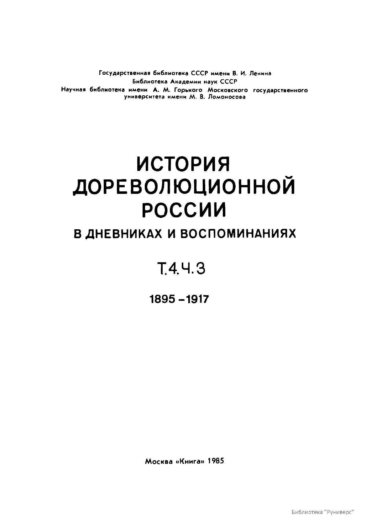 История дореволюционной России в дневниках и воспоминаниях. Т. 4. Ч. 3. 1895-1917