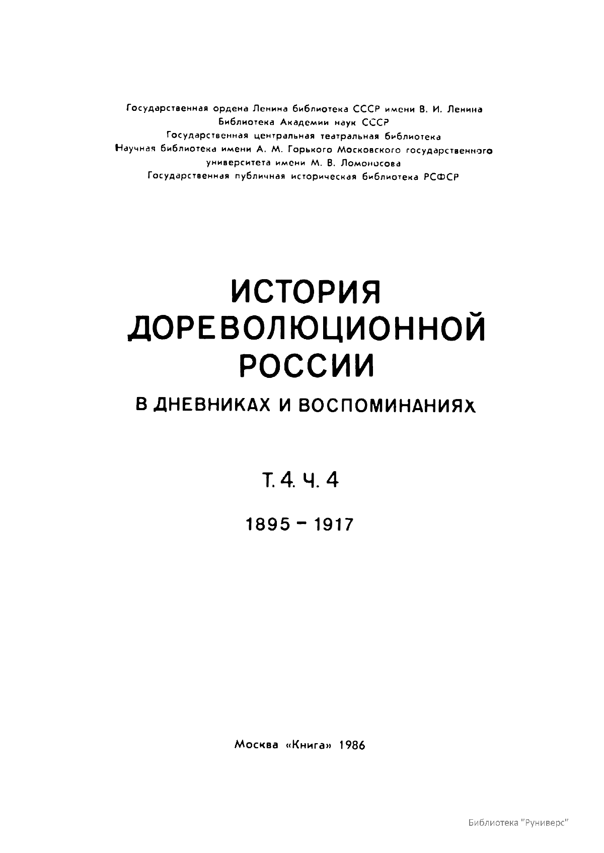 История дореволюционной России в дневниках и воспоминаниях. Т. 4. Ч. 4. 1895-1917