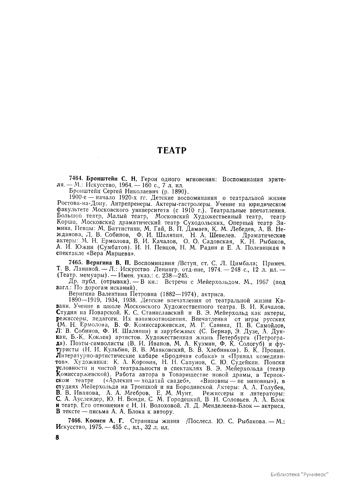 Многотомное издание этого уникального библиографического исследования, ставшего итогом многолетней работы большого коллектива ведущих отечественных источниковедов и библиографов главных библиотек нашей страны, представляет собой крупнейшее собрание аннотированной мемуарной литературы по истории России. Ведущую роль в создании этого фундаментального издания сыграл крупный отечественный ученый-историк П.А. Зайончковский, под редакцией и неусыпным контролем которого разрабатывался и выходил представленный многотомник (последние 5 книг вышли после кончины этого замечательного учёного-энциклопедиста).