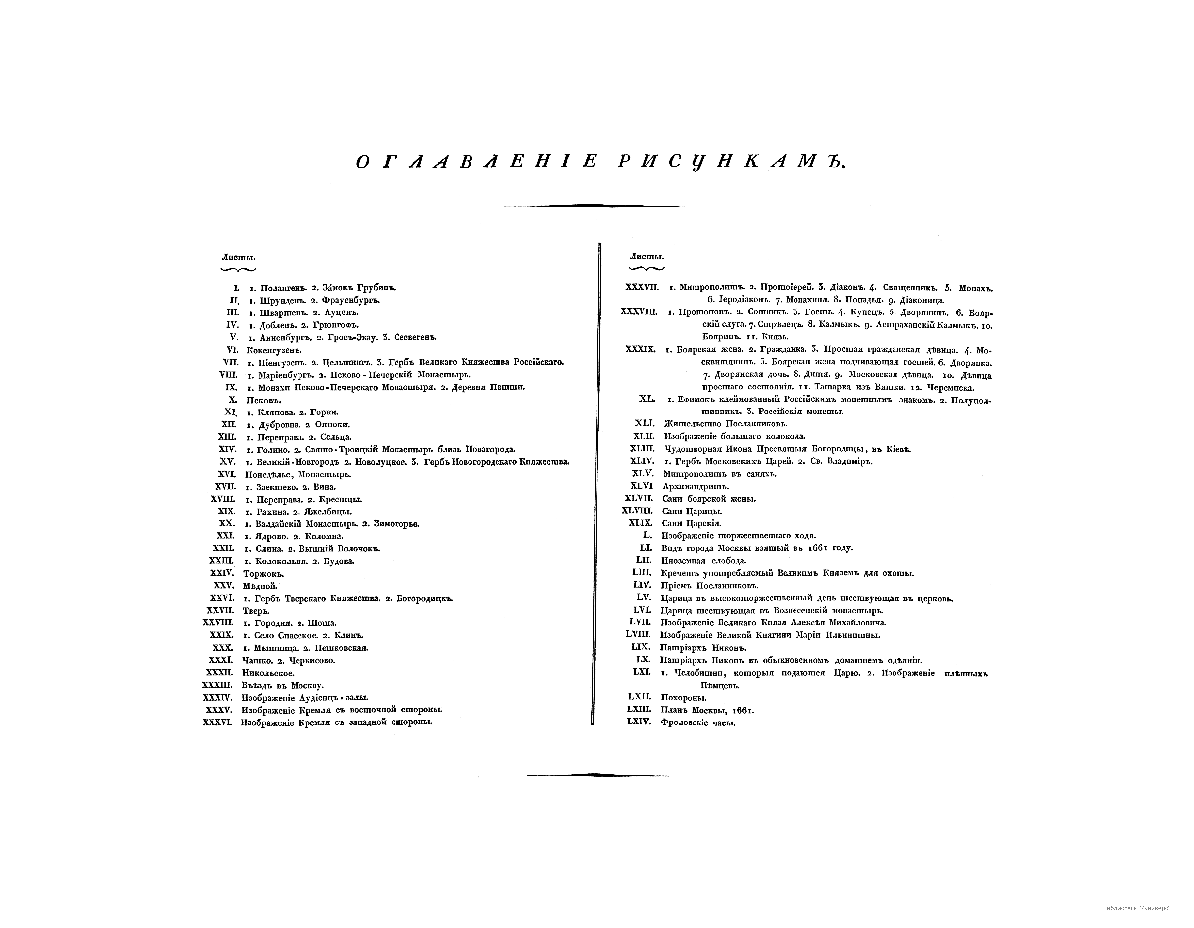 Рисунки къ путешествiю по Россiи Римско-Императорскаго посланника барона Мейерберга въ 1661 и 1662 годахъ, представляющiе виды, народные обычаи, одѣянiя, портреты и т.п.