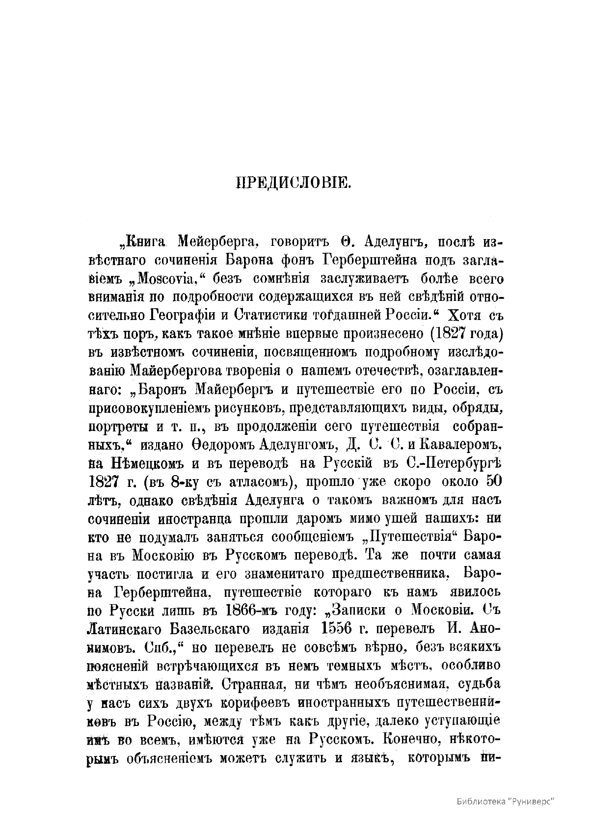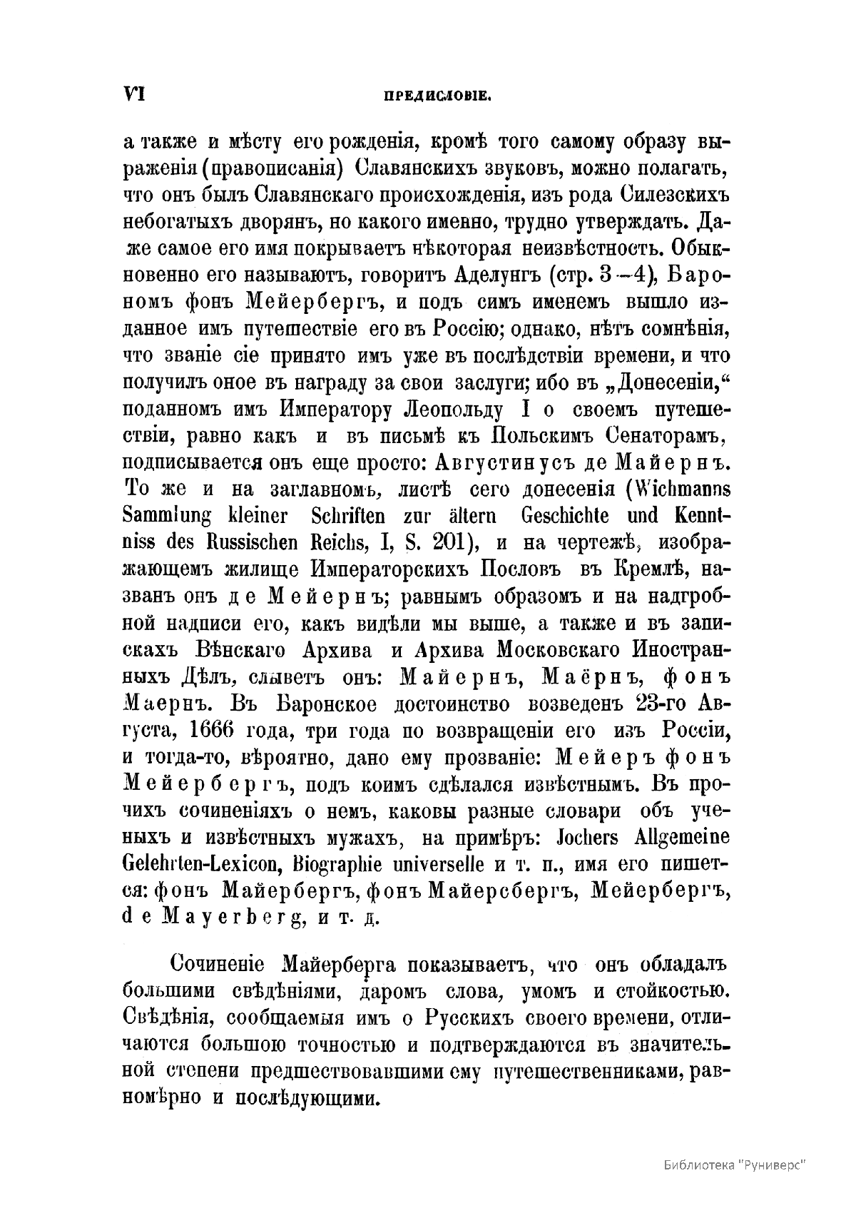 Путешествiе въ Московiю барона Августина Майерберга и Горацiя Вильгельма Кальвуччи, пословъ Августѣйшега Римскаго Императора Леопольда къ Царю и Великому Князю Алексѣю Михайловичу въ 1661 году, описанное самимъ барономъ Майербергомъ