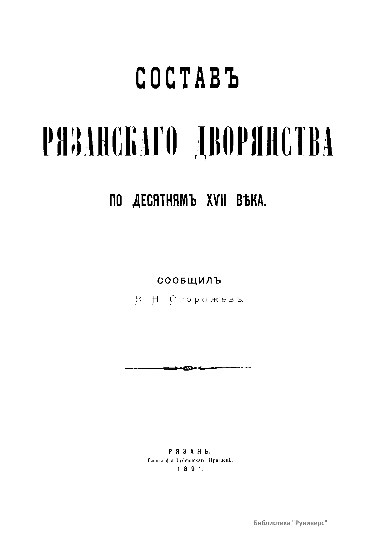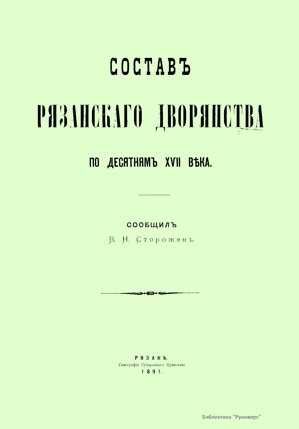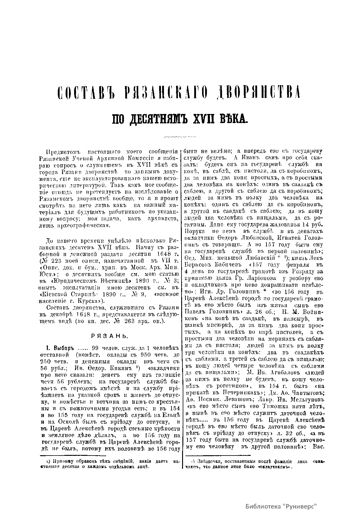 Составъ рязанскаго дворянства по десятнямъ XVII вѣка