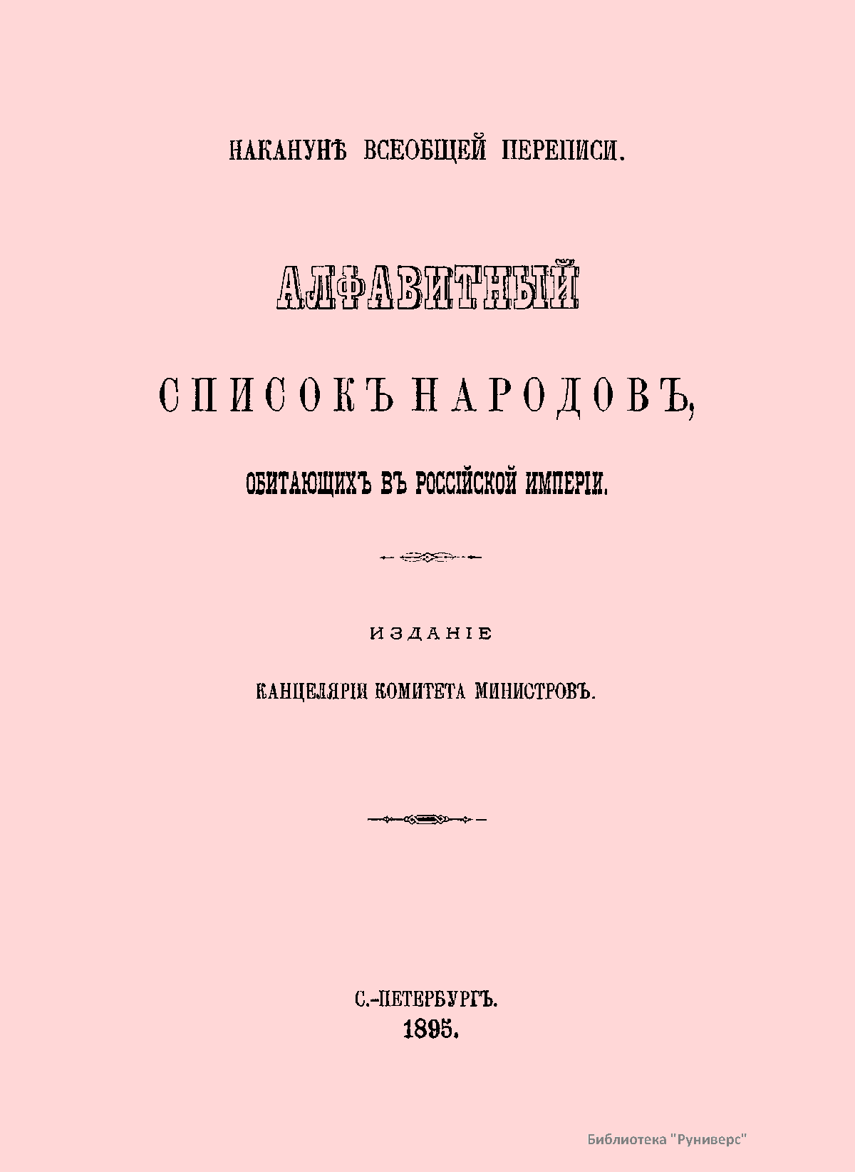 Алфавитный список народов, обитающихъ в Российской Имперiи