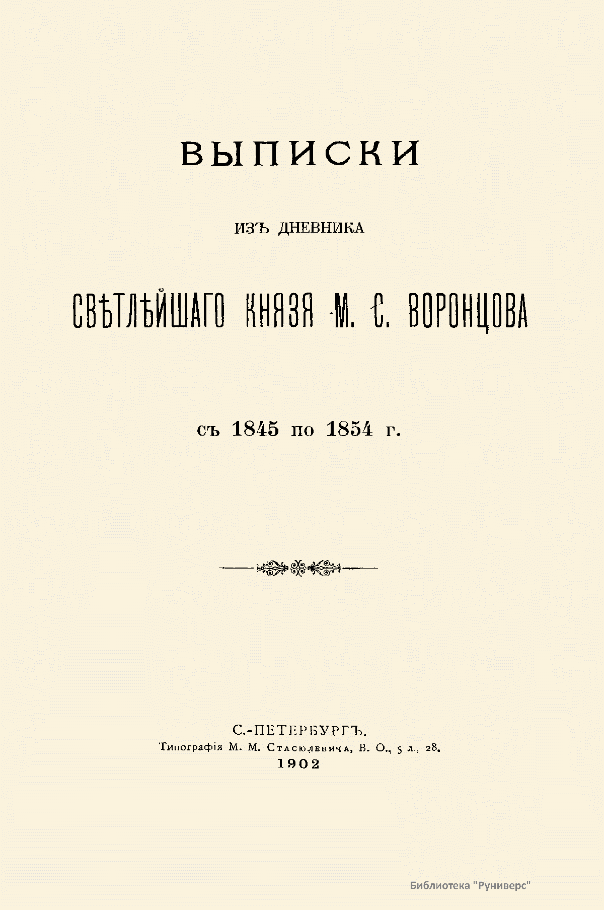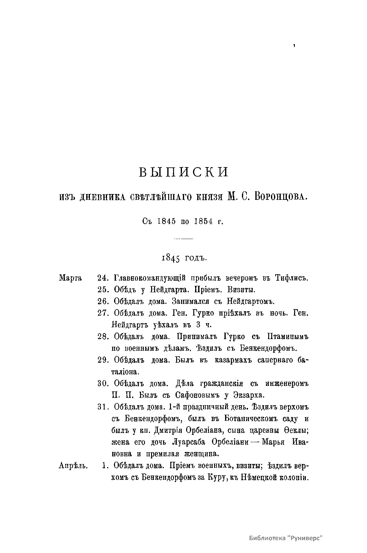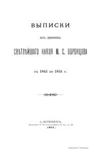 Выписки изъ дневника свѣтлѣйшаго князя М.С. Воронцова съ 1845 по 1854 г.