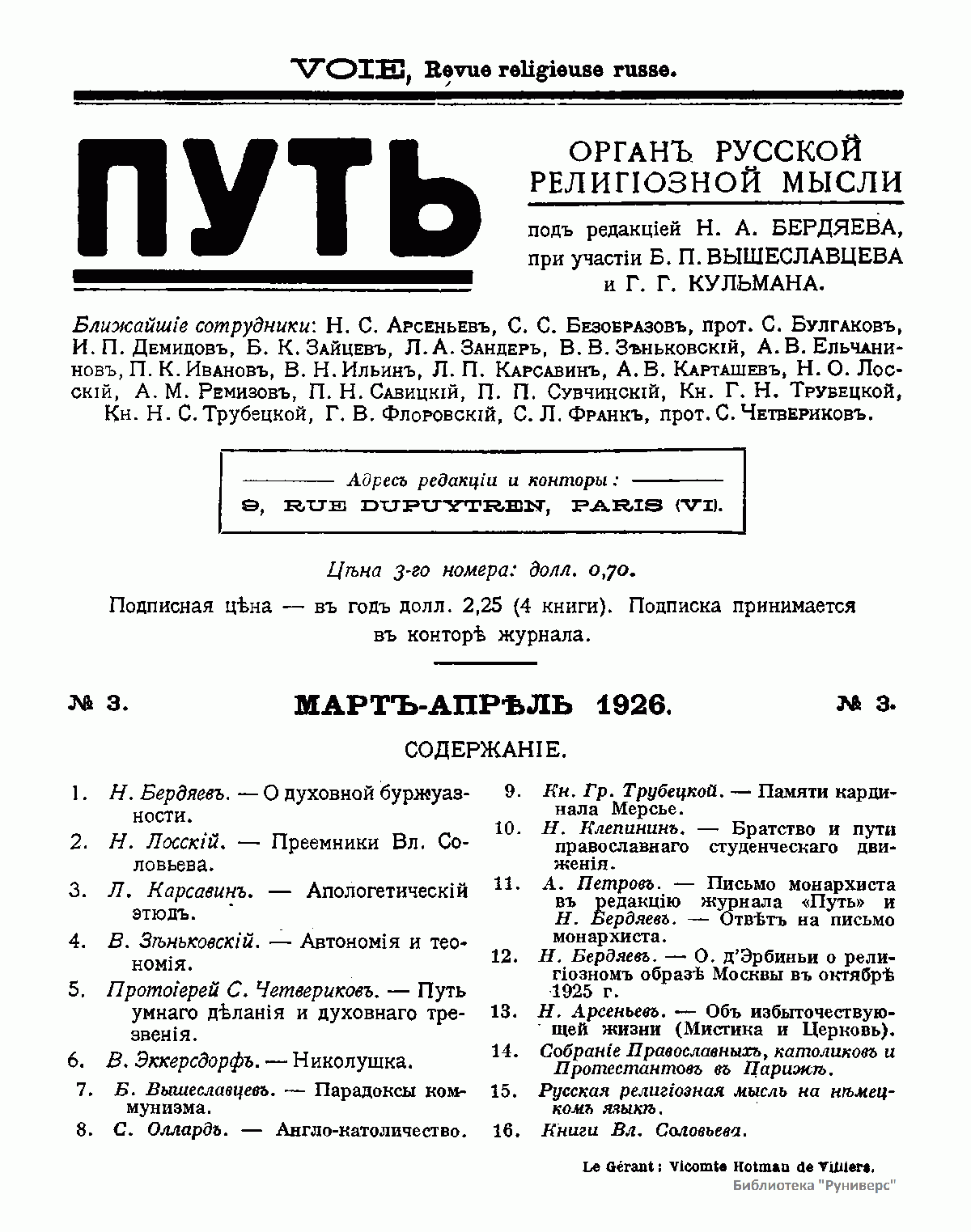 Журнал «Путь» был изданием Религиозно-Философской академии (Париж), его редактором и вдохновителем был