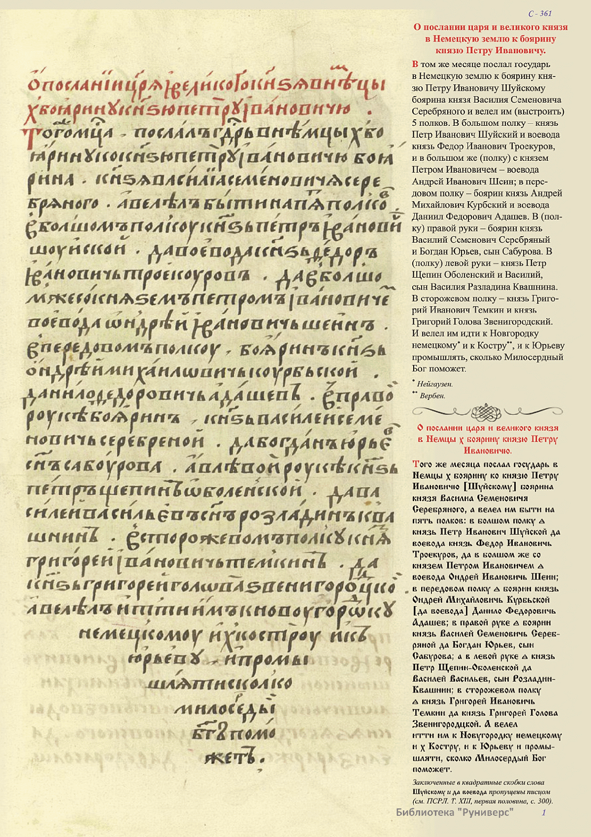Лицевой летописный свод. XVI века — монументальный памятник древнерусского книжного искусства. На 10 тысячах листов с более чем 17 тысячами красочных миниатюр — «окон в историю» — представлена самая ранняя историческая и литературная энциклопедия. Лицевой свод дошел до наших дней в 10 томах, находящихся в разных древлехранилищах: БАН к РНБ в Санкт-Петербурге и ГИМ в Москве. Фирма «АКТЕОН» совместно с хранителями впервые осуществила научное факсимильное издание «Лицевой летописный свод XVI века». Предлагаемое издание с переводом — как дополнение в рамках научного аппарата вышеназванного факсимиле - представлено тремя разделами: библейская история, всемирная история, русская летописная история. В настоящем издании листы расположены в хронологическом порядке повествования На внешнем поле размещены транслитерация и перевод на современный русский язык. Русская летописная история 1114—1567 гг. — отражена на 6010 Лицевого летописного свода XVI века в следующих его томах: Г — Голицынский том (Отдел рукописей Российский национальной библиотеки, F.IV.225), Л — Лаптевский TOM (Отдел рукописей Российской национальной библиотеки, F.IV.233), O-I — Остермановский первый том (Отдел рукописей Библиотеки Академии наук, 31. 7. 30-1), O-II — Остермановский второй той (Отдел рукописей Библиотеки Академии наук, 31, 7. 30-2), Ш — Шумиловский том (Отдел рукописей Российской национальной библиотеки, F, IY. 232), С — Синодальный том (Отдел рукописей Государственного Исторического музея. Син. № 962), Ц— Царственная книга (Отдел рукописей Государственного Историческою музея. Син. № 149). В сносках отряжены разночтения с перепей ПСРЛ — Полным собранием русских летописей - фундаментальной для изучения истории древней и средневековой Руси книжной серией (её тексты, в основном, издавались наборно, в орфографии XIX века).