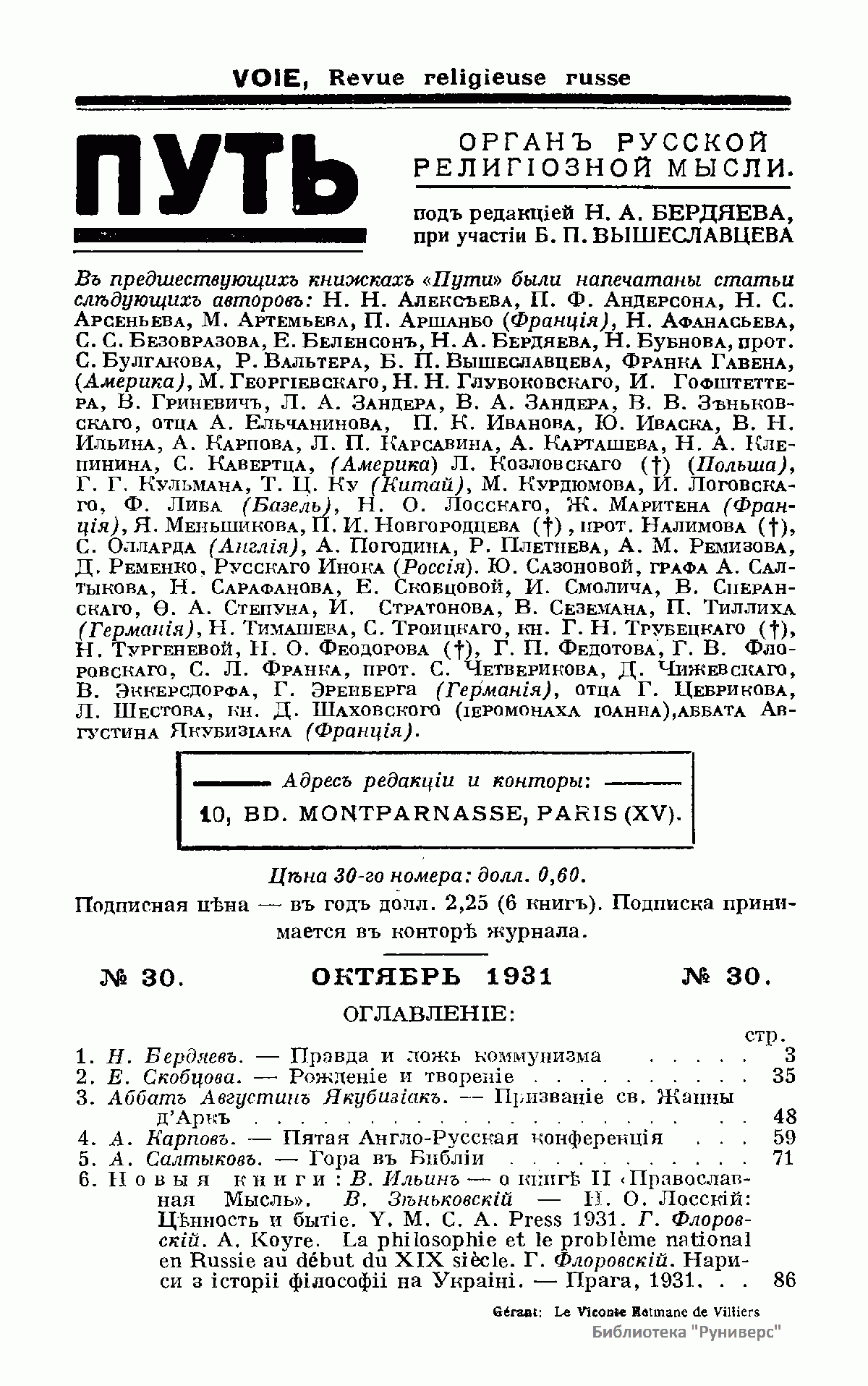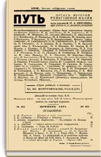 Путь: Орган русской религиозной мысли. №30. Октябрь 1931