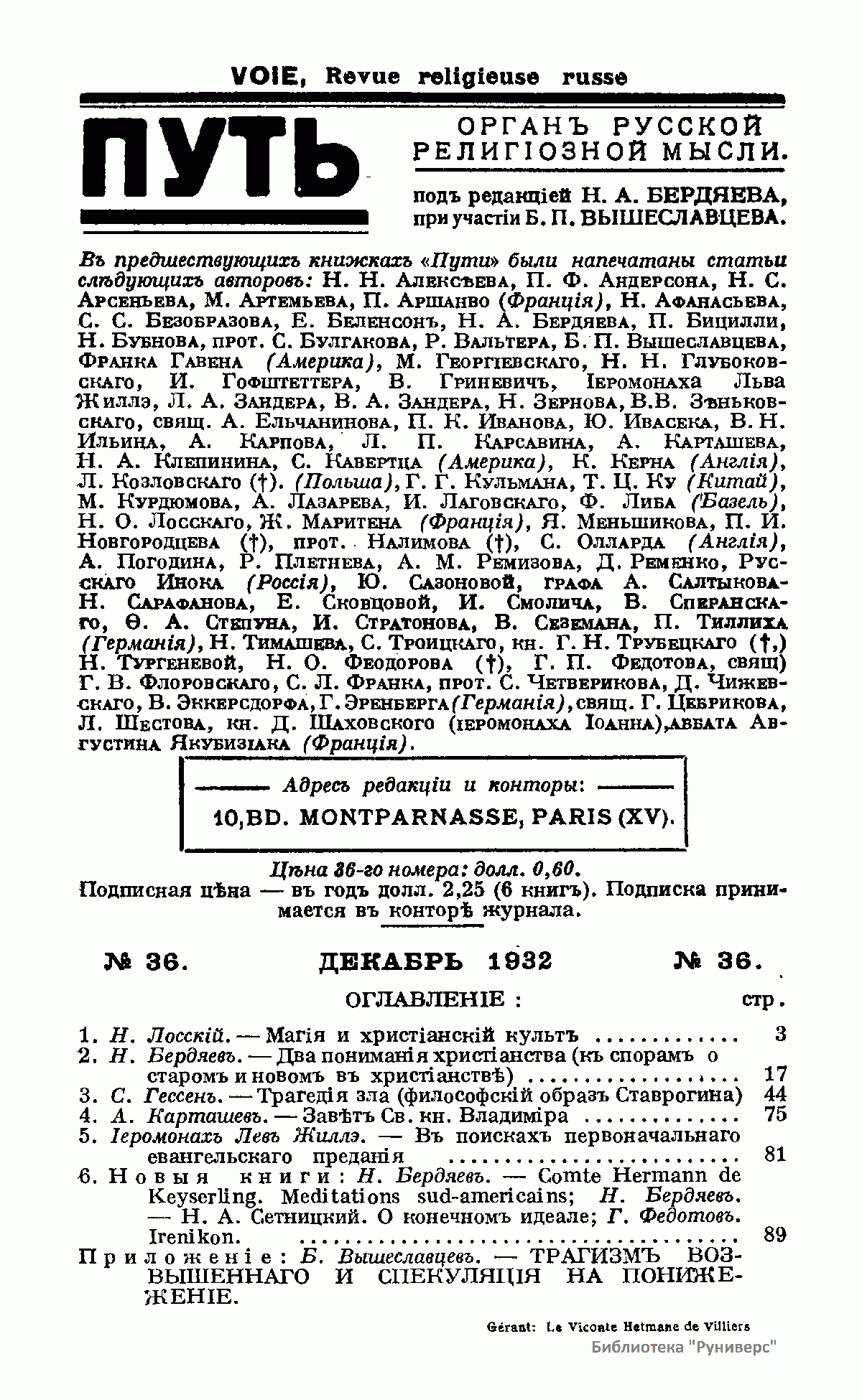 Путь: Орган русской религиозной мысли. №36. Декабрь 1932