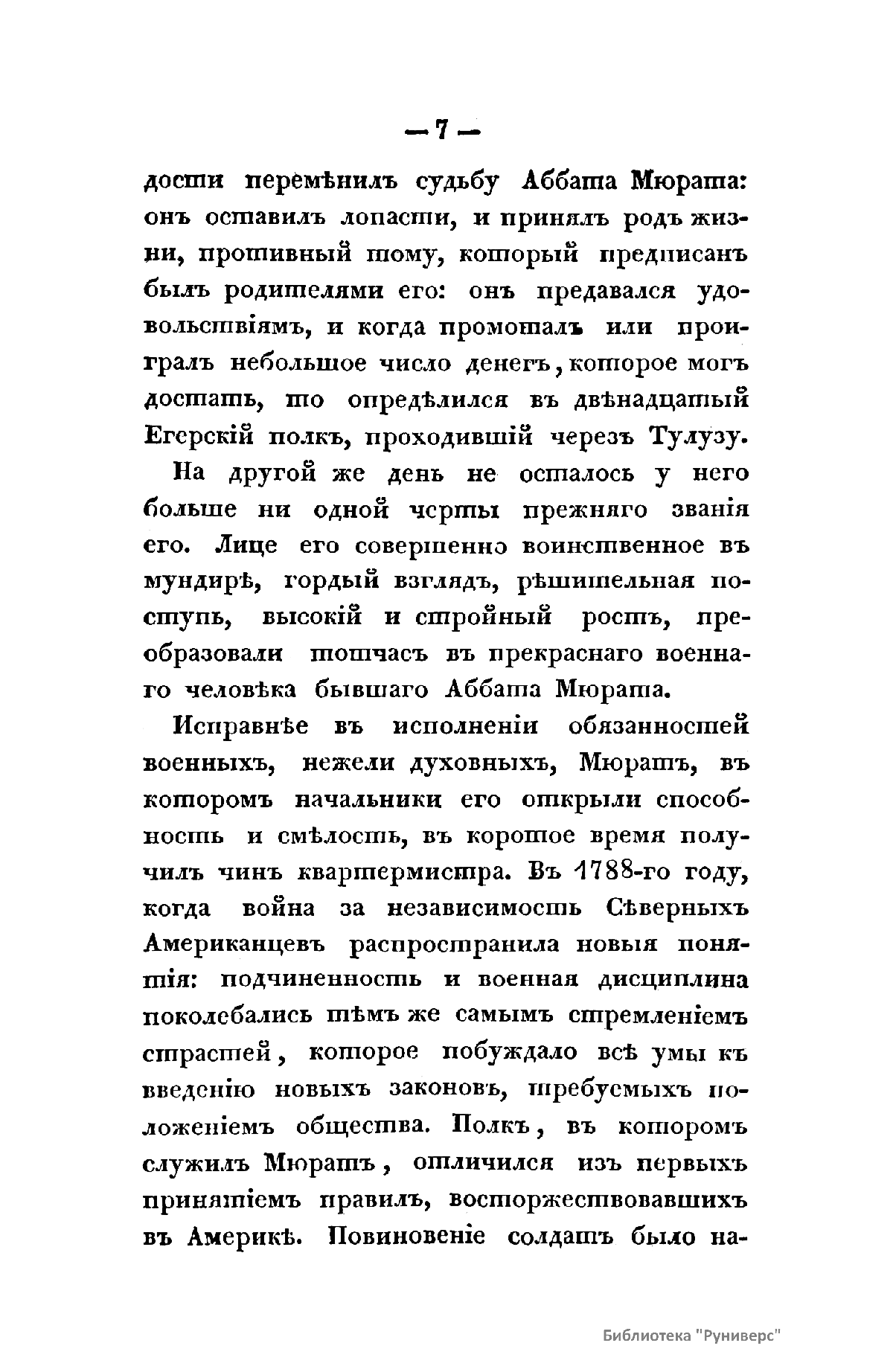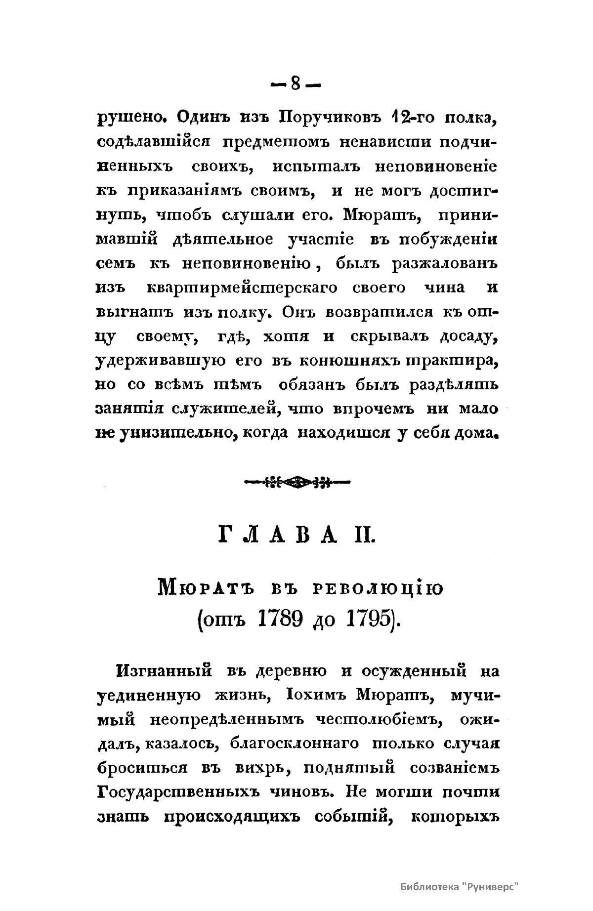 «История Иохима Мюрата, зятя Наполеонова, бывшаго короля Неаполитанскаго» Л.-Ш. Галлуа вышла в свет в России в 1830 г., через почти двадцать лет после событий Отечественной войны 1812 г. Автор книги был установлен по парижскому изданию 1828 г. Современник Мюрата, Галлуа собрал и обработал интересный материал, касающийся как непосредственно биографии знаменитого маршала, так и наполеоновской эпохи в целом. Сын трактирщика, ученик духовной семинарии, Иоахим Мюрат сделал блестящую карьеру военного и политического деятеля. Получил звание маршала Франции, корону Неаполитанского королевства, титул герцога Бергского, Великого адмирала, принца империи. Был женат на сестре Бонапарта Каролине. Мюрат принимал участие практически во всех военных кампаниях и крупных сражениях наполеоновских войн, проявив себя талантливым военачальником. Во время войны с Россией был назначен командующим кавалерией французской армии, лично водил в атаку кирасиров на укрепления русских войск в Бородинской битве, в сражении при Тарутино Мюрату удалось спасти остатки французской армии и выйти из окружения противника.