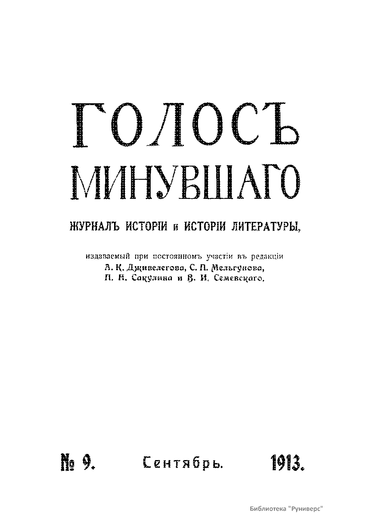 Голосъ минувшаго. 1913. 9. Сентябрь