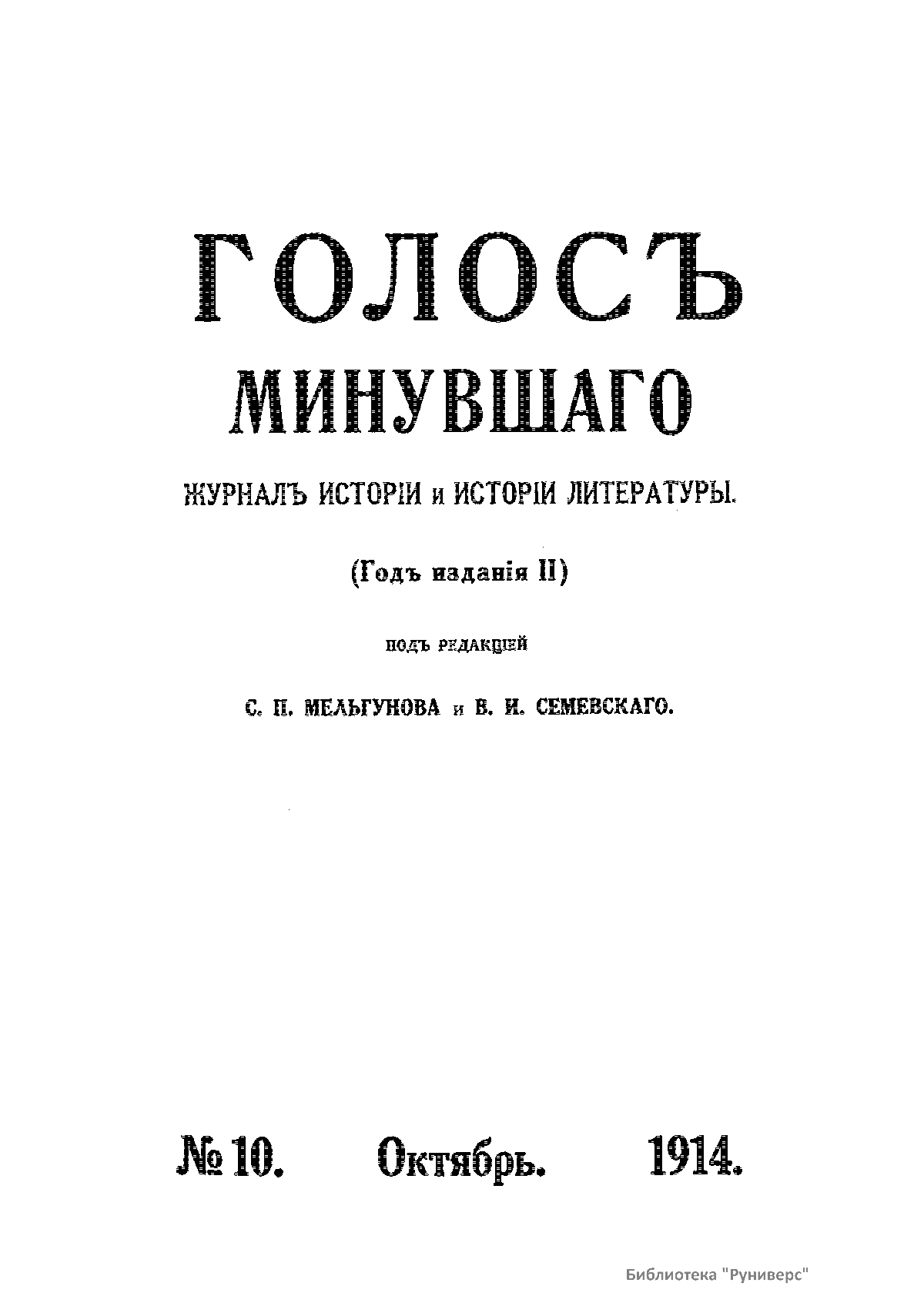 Голосъ минувшаго. 1914. 10. Октябрь
