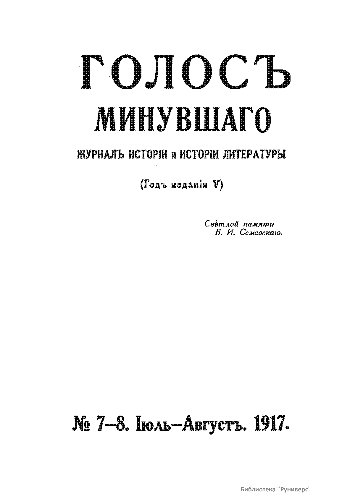 Голосъ минувшаго. 1917. 7-8. Iюль-Августъ
