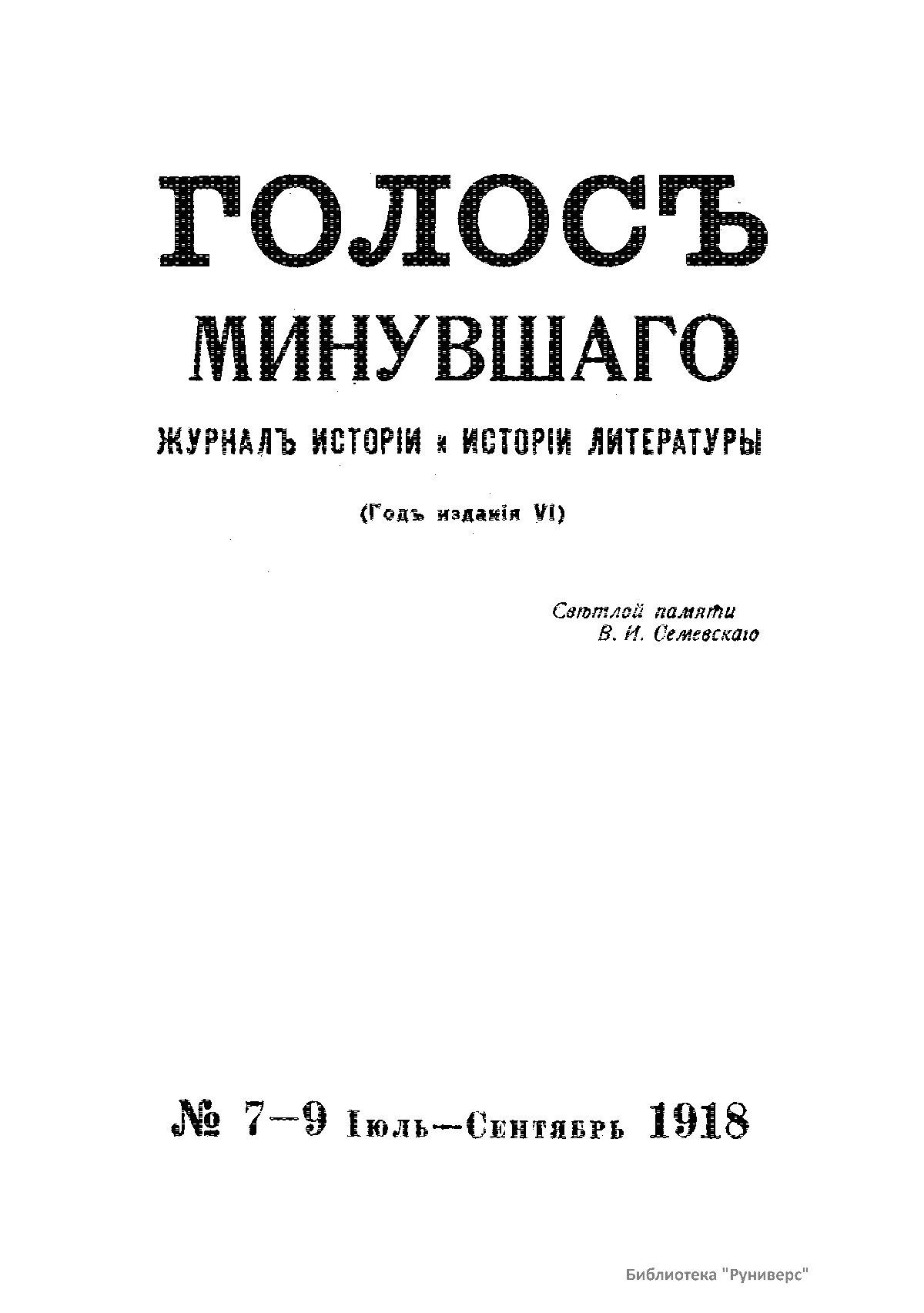 Голосъ минувшаго. 1918. 7-9. Iюль-Сентябрь