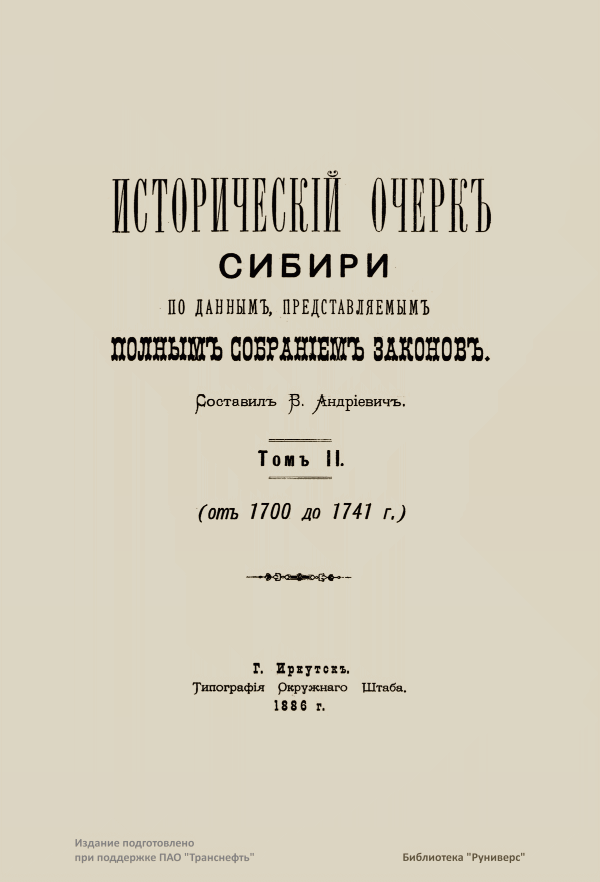 Историческiй очеркъ Сибири по даннымъ, представляемымъ Полнымъ собранiемъ законовъ