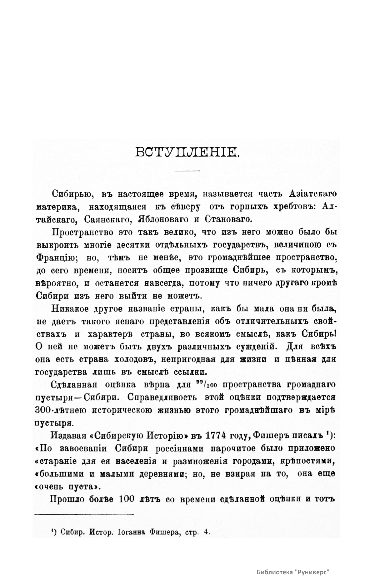 Первая часть основана в большей части на трудах немецких исследователей Сибири Г. Ф. Миллера и И. Э. Фишера и посвящена событиям XVI–XVII веков, вторая часть иллюстрирует историю Сибири конца XVII – середины XVIII веков. Особое внимание в своем исследовании автор уделяет освоению новых территорий, строительству городов и крепостей, анализу администрации и мер по укреплению социальной и военной структуры в этом регионе. Также в работе изложен обширный материал о развитии ратного дела, местных промыслов, торговли, культурной и религиозной жизни Сибири.