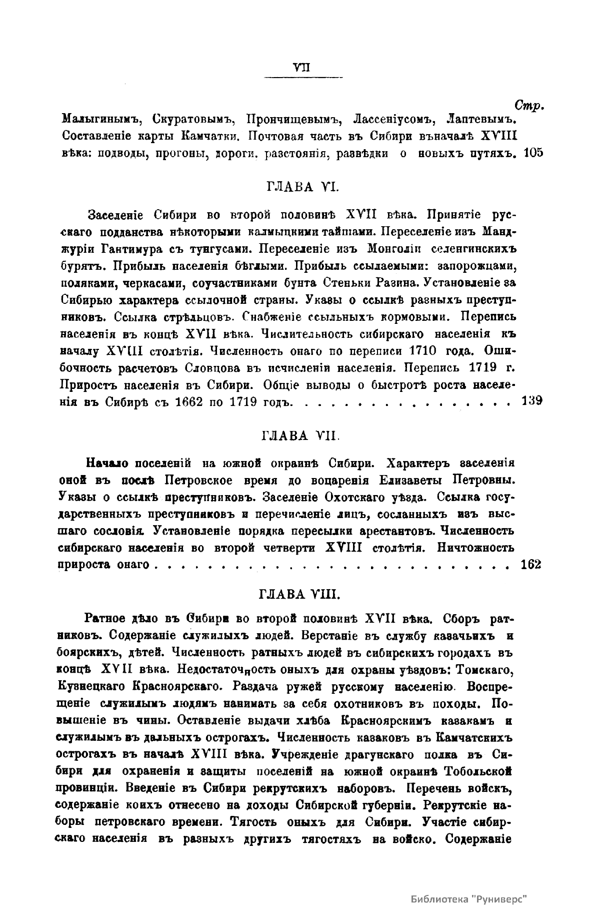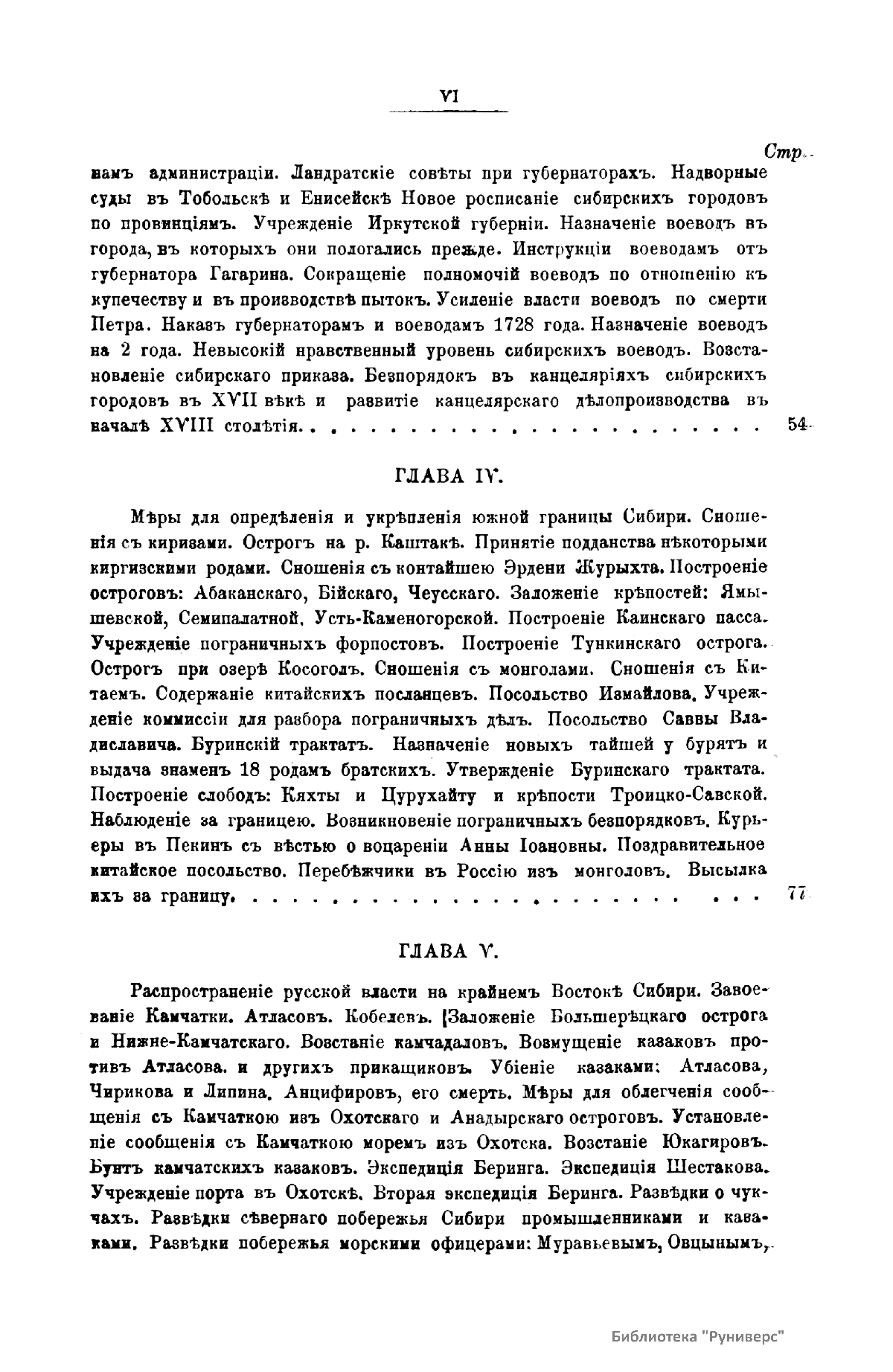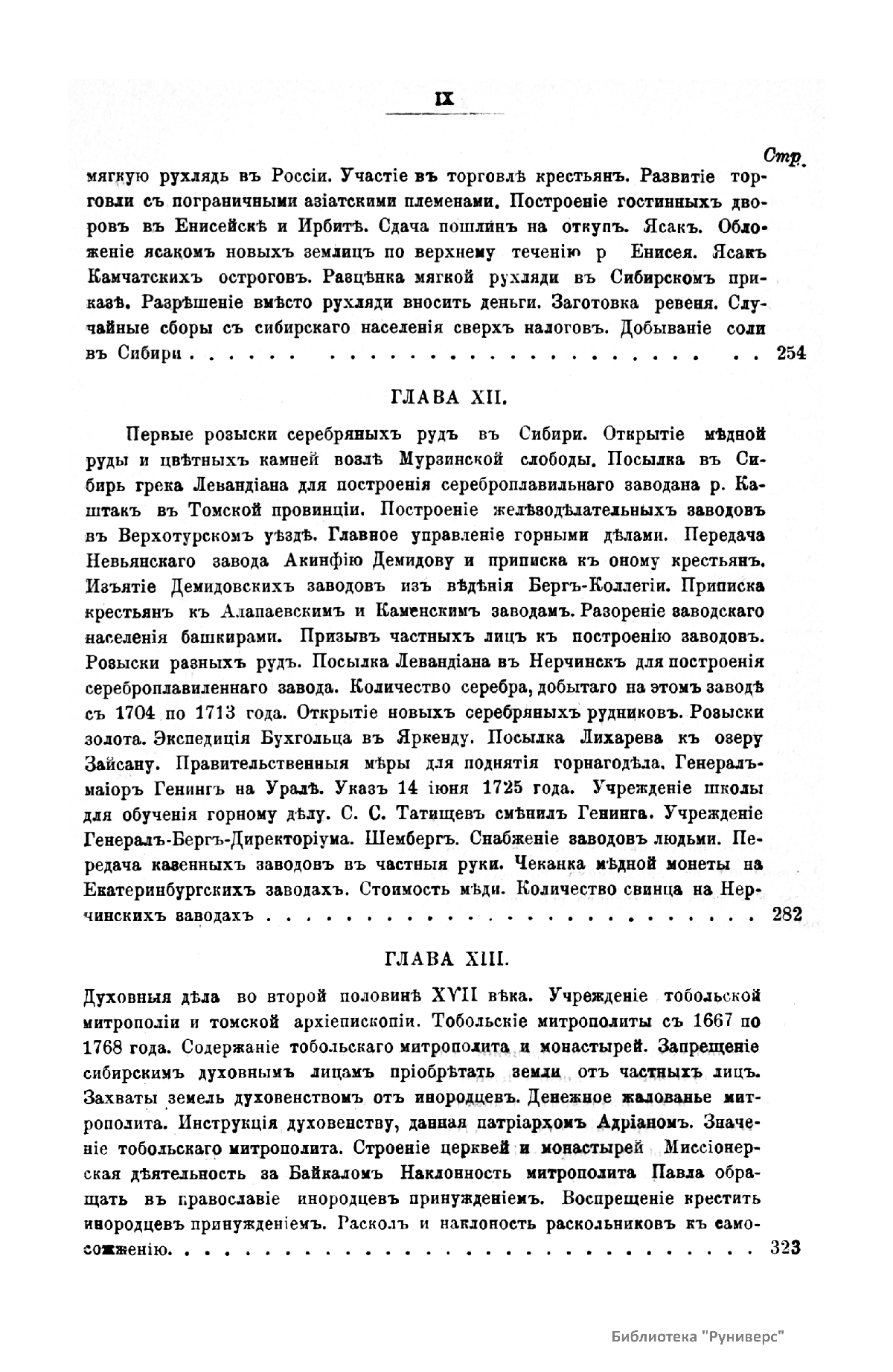 Первая часть основана в большей части на трудах немецких исследователей Сибири Г. Ф. Миллера и И. Э. Фишера и посвящена событиям XVI–XVII веков, вторая часть иллюстрирует историю Сибири конца XVII – середины XVIII веков. Особое внимание в своем исследовании автор уделяет освоению новых территорий, строительству городов и крепостей, анализу администрации и мер по укреплению социальной и военной структуры в этом регионе. Также в работе изложен обширный материал о развитии ратного дела, местных промыслов, торговли, культурной и религиозной жизни Сибири.