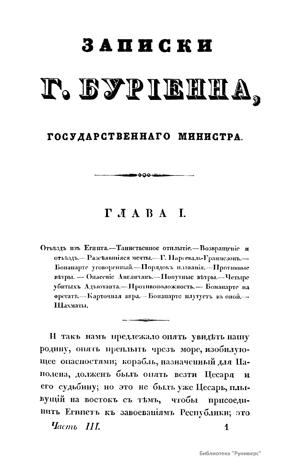 Записки г. Бурiенна, государственнаго министра о Наполеонѣ, директорiи, консульствѣ, Имперiи и возстановленiи Бурбоновъ. Томъ второй