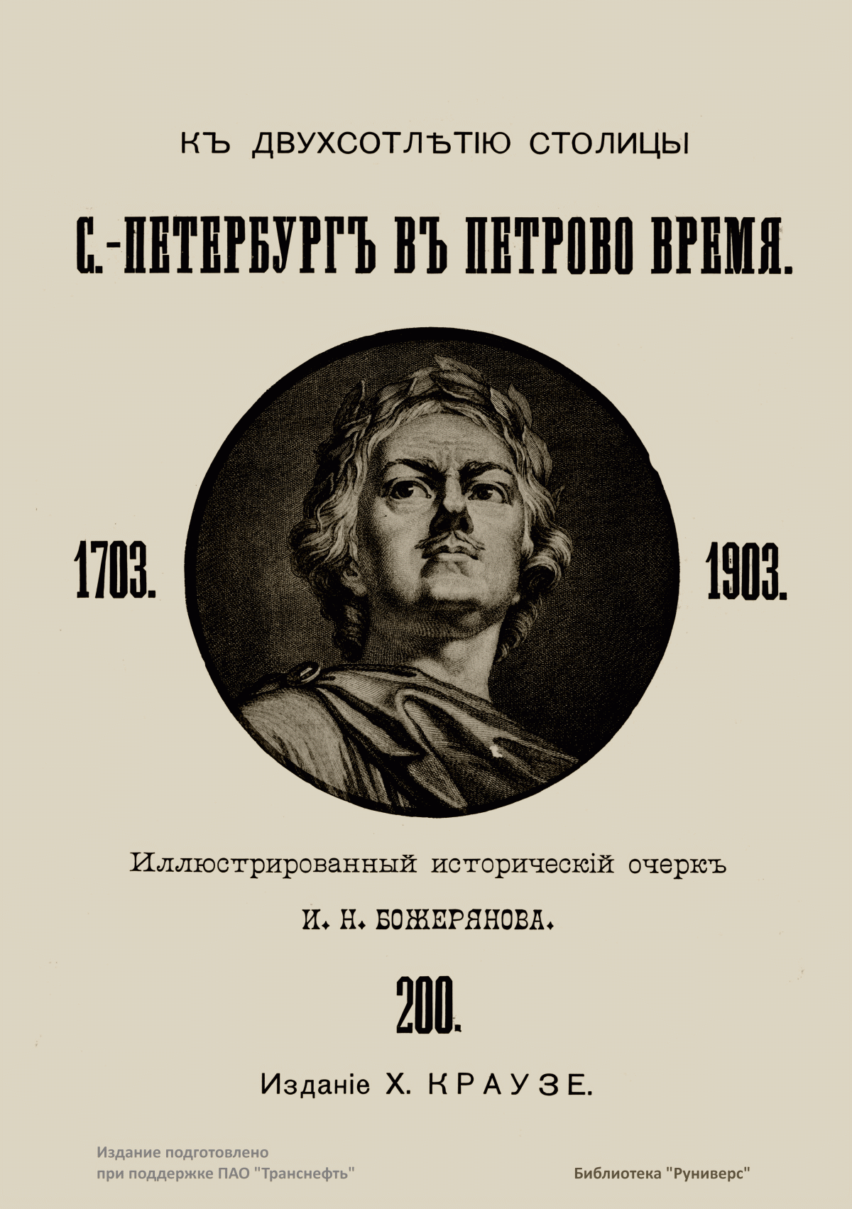 Книга И. Н. Божерянова была издана к 200-летию Санкт-Петербурга (издатель X. Краузе). Истинным украшением этого прекрасного исторического очерка стали 300 гравюр из коллекции П. Я. Дашкова, на которых отображена история Санкт-Петербурга с момента его основания до начала XX века. Рассказ иллюстрируют редкие фотографии и различные зарисовки, выполненные фототипией. В издании представлены богатейшие сведения о северо-западных землях в глубокой древности, которые с первых дней существования Русского государства входили в его состав; о выдающихся людях, живших в столице Российской империи: членах царской фамилии, высших сановниках, крупных предпринимателях, деятелях науки, литературы, искусства и культуры, о первых строителях Северной Пальмиры. Интереснейшие истории о былом основаны на данных из первоисточников, являвшихся библиографической редкостью уже в дореволюционной России. Это «Письма и бумаги Петра Великого», «Описание Санкт-Петербурга», «Записки графа Миниха» Богданова и др. Эти материалы дают возможность по-новому рассмотреть личность Петра и его деяния. Ценность издания в значительной степени увеличивается благодаря размещенным в конце книги подробным сведениям о крупных предприятиях, которые появились к началу XX века в Санкт-Петербурге (Товарищество Табачной фабрики Саатчи и Мангуби — поставщик Двора его императорского величества, и др.). Эти данные дополнены художественно оформленными фотографиями.