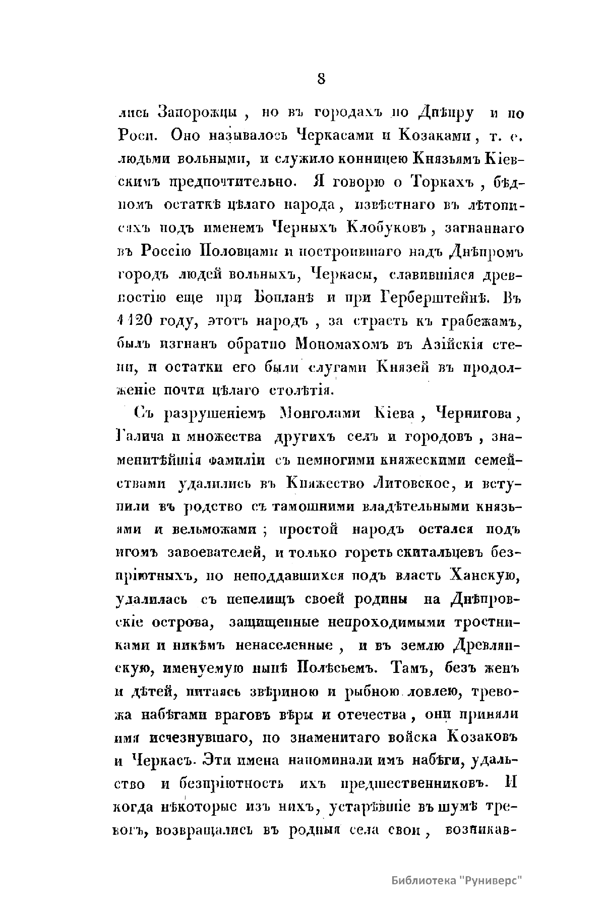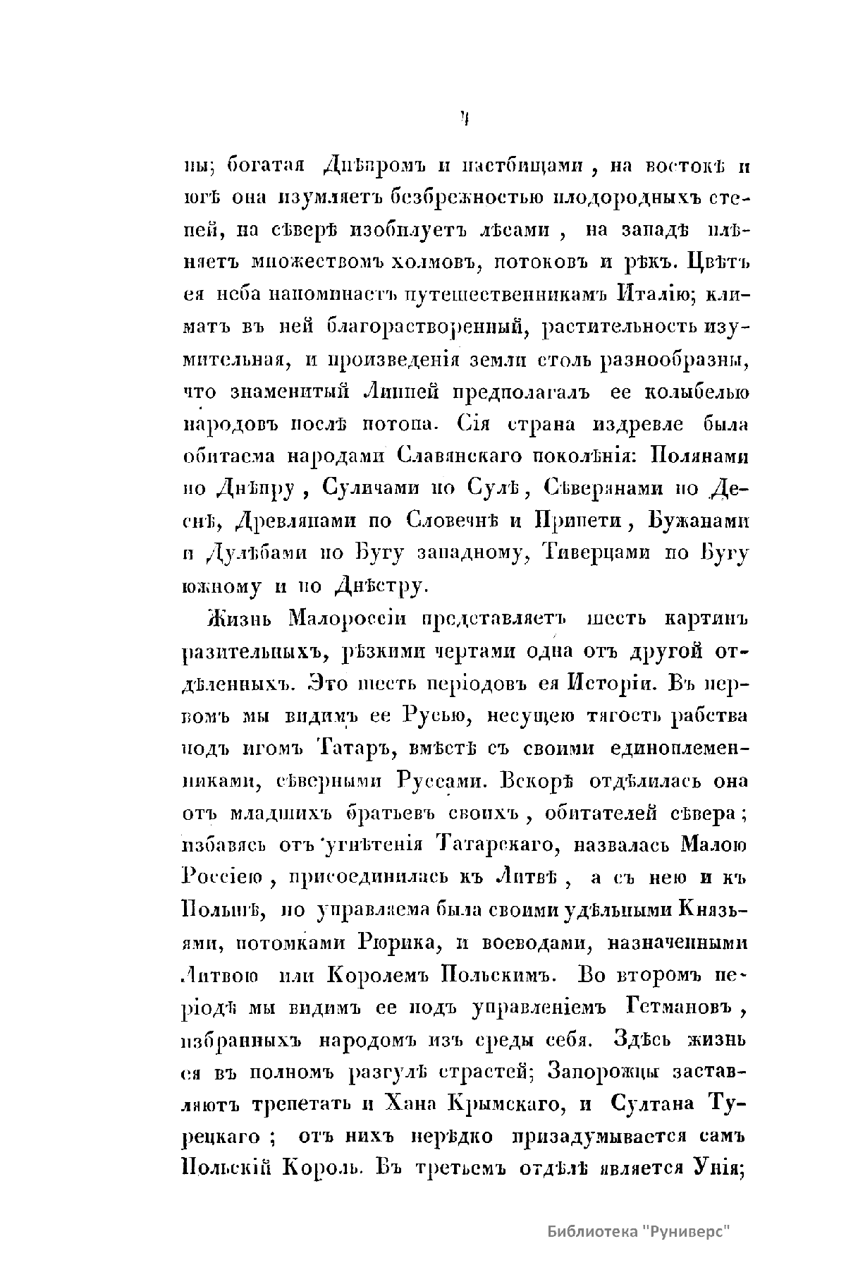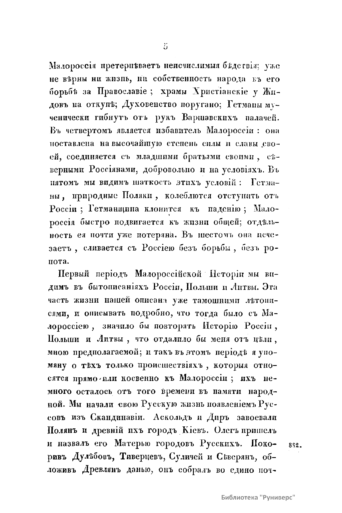 Первые два тома содержат основной текст — от древних времен до 1793 г., а 3–5 тома — документальные дополнения, примечания, хронологические таблицы, источники, указатели. Основным источником для книги послужила «История русов» (произведение, написанное в виде политического памфлета в конце XVIII–начале XIX века на территории Малороссии) почти не подкрепленная другими документальными свидетельствами. Тем не менее, книга имела большое влияние на современников Н. А. Маркевича, внесла свой вклад в украинскую историографию XIX века, а документальные приложения сохраняют свою историческую значимость и сегодня.