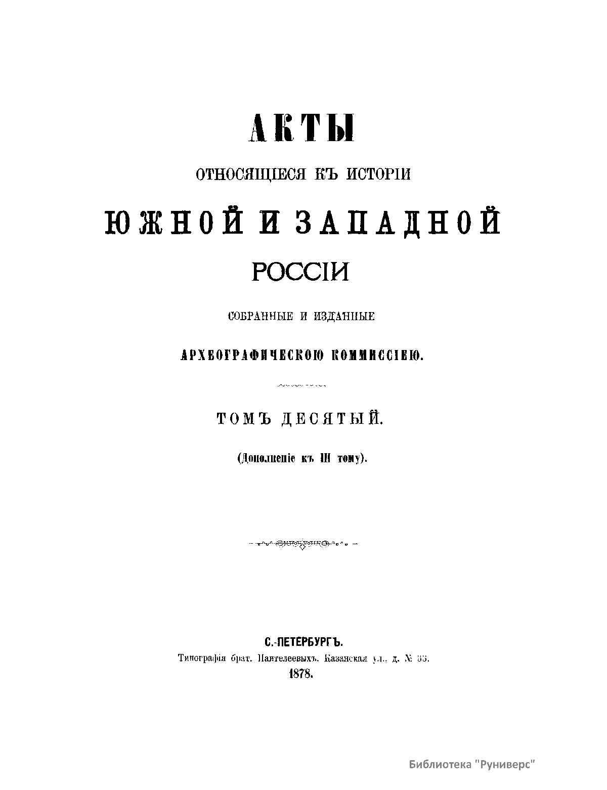 Акты, относящiеся къ исторiи южной и западной Россiи. Томъ десятый (Дополненiе къ III тому)