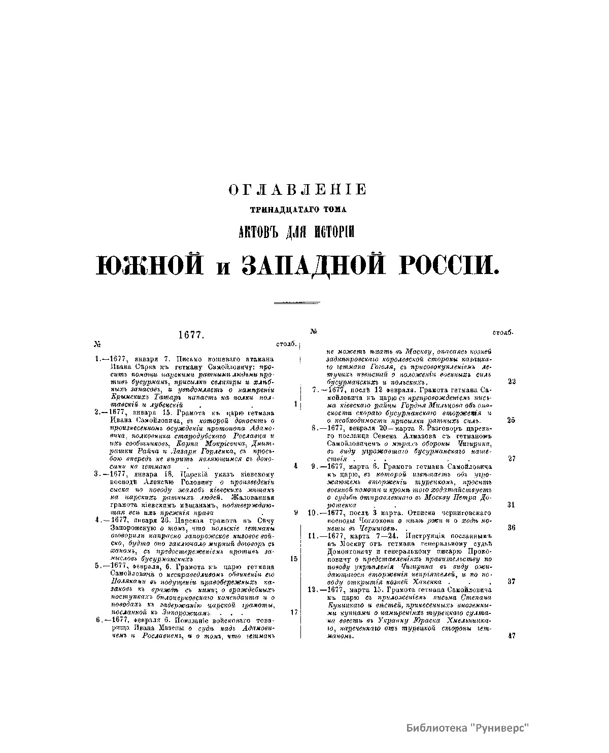 Акты, относящiеся къ исторiи южной и западной Россiи. Томъ тринадцатый. 1677-1678