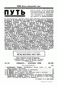 «Путь: Орган русской религиозной мысли» – журнал, издававшийся в Париже с сентября 1925 г. по март 1940 г., собравший на своих страницах все философские и богословские силы русской эмиграции. В редакционной статье «Духовные задачи русской эмиграции» («Путь», № 1. Сентябрь 1925 г.) отмечалось, что журнал ставит своей целью сохранение преемственности в процессе существования русской духовной культуры, а также стремится к преодолению сформировавшейся к тому времени эмигрантской психологии, сильно политизированной и противоречивой в своем отношении к Русской Православной Церкви и Советской России, что создавало угрозу раскола русской эмиграции.