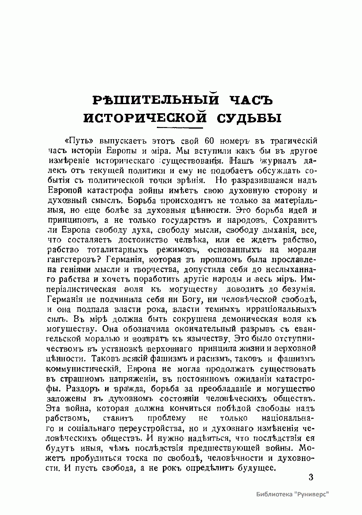 (1877- 1950) и др. В дальнейшем состав сотрудников менялся, привлекались также немецкие и английские корреспонденты (Ж. Маритен, П. Тиллих, С. Оллард и др.). Всего с журналом за 15 лет его существования сотрудничали около 130 человек. Журнал насчитывал 61 выпуск при тираже 1000–1200 экземпляров. По своему формату это было интеллектуальное богословско-философское периодическое издание, включающее наряду с академическими статьями, публицистику, эссе, письма, мемуары.