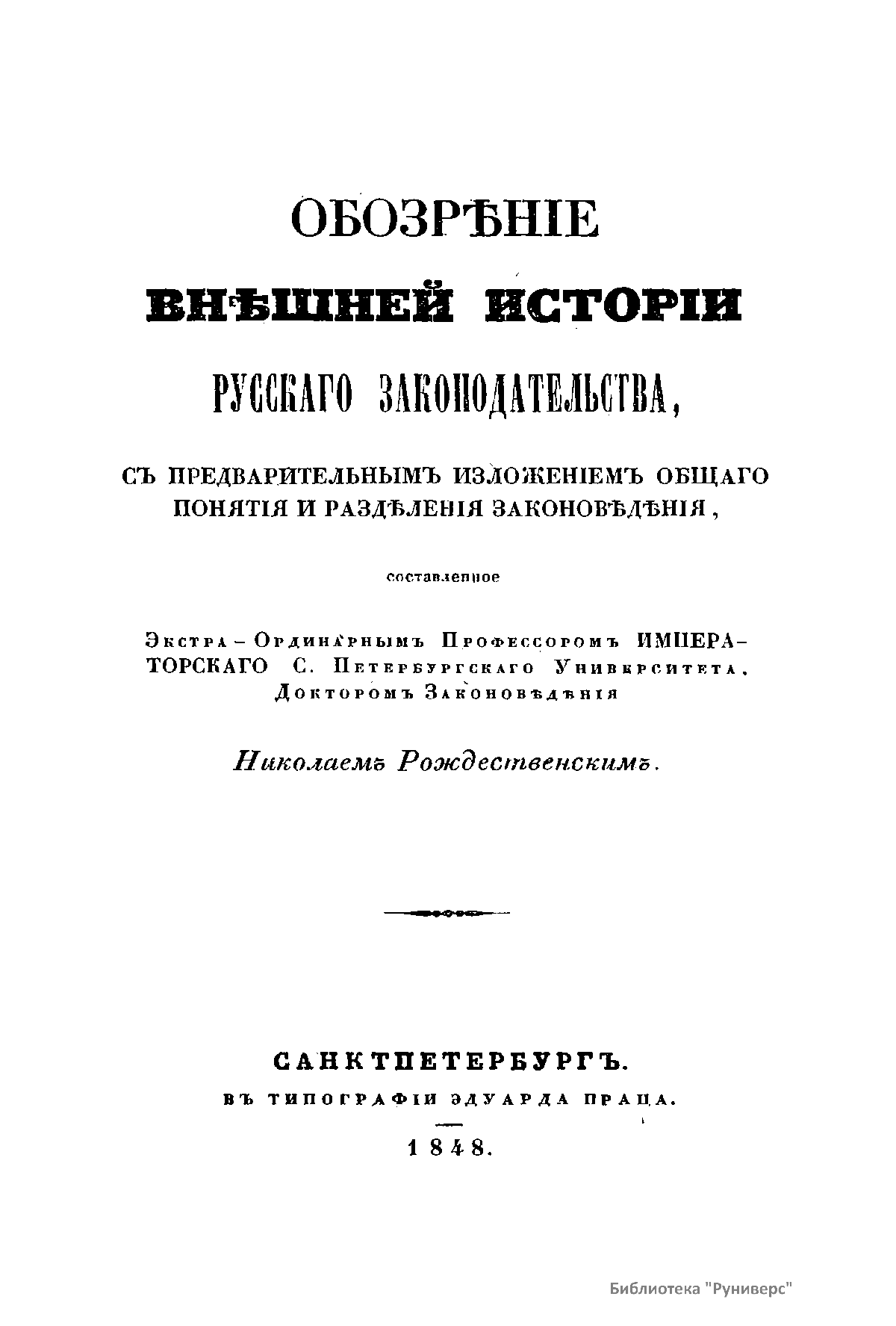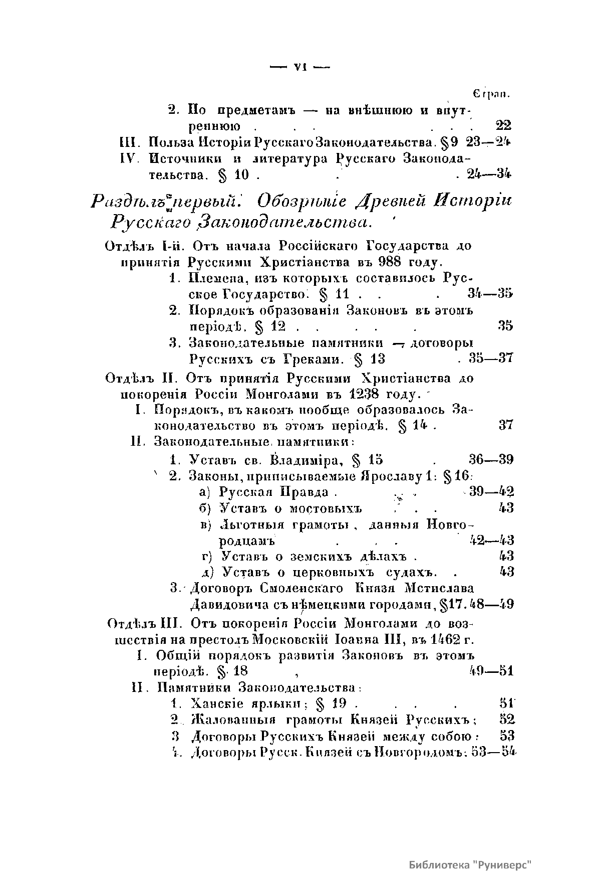 Обозрѣнiе внѣшней исторiи русскаго законодательства, съ предварительнымъ изложенiемъ общаго понятiя и раздѣленiя законовѣдѣнiя