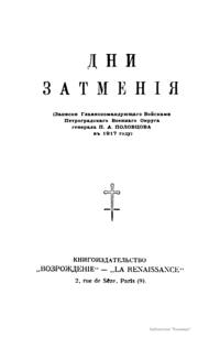 Записки генерала П. А. Половцова, главнокомандующего войсками Петроградского военного округа в 1917 г., в условиях беспрерывного кризиса власти и управления, написаны по горячим следам – по словам автора, «они представляют собой сборник личных впечатлений, вынесенных из только что пережитого прошлого». Половцов приводит много ярких примеров поведения лидеров партий, министров, различных должностных лиц в критические дни 1917 г., дает исчерпывающую характеристику А. Ф. Керенскому. Его зарисовки передают точную психологическую атмосферу уходящего прошлого. Легкий стиль и юмор автора не скрывают ощущения приближающейся катастрофы.