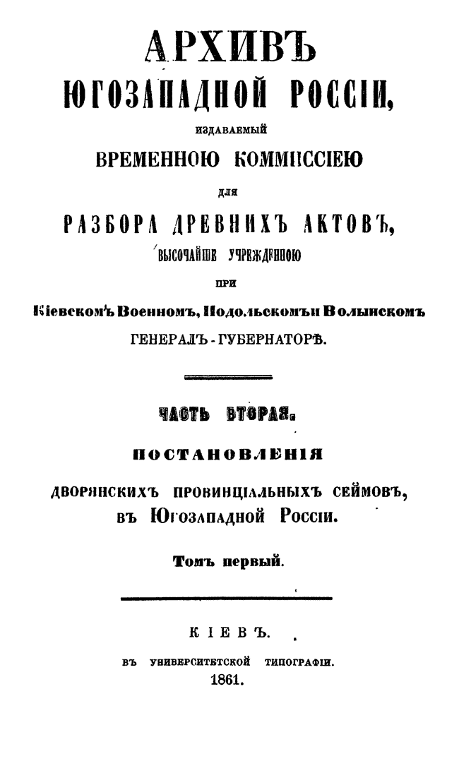Архив Юго-Западной России. Часть 2. Том I.